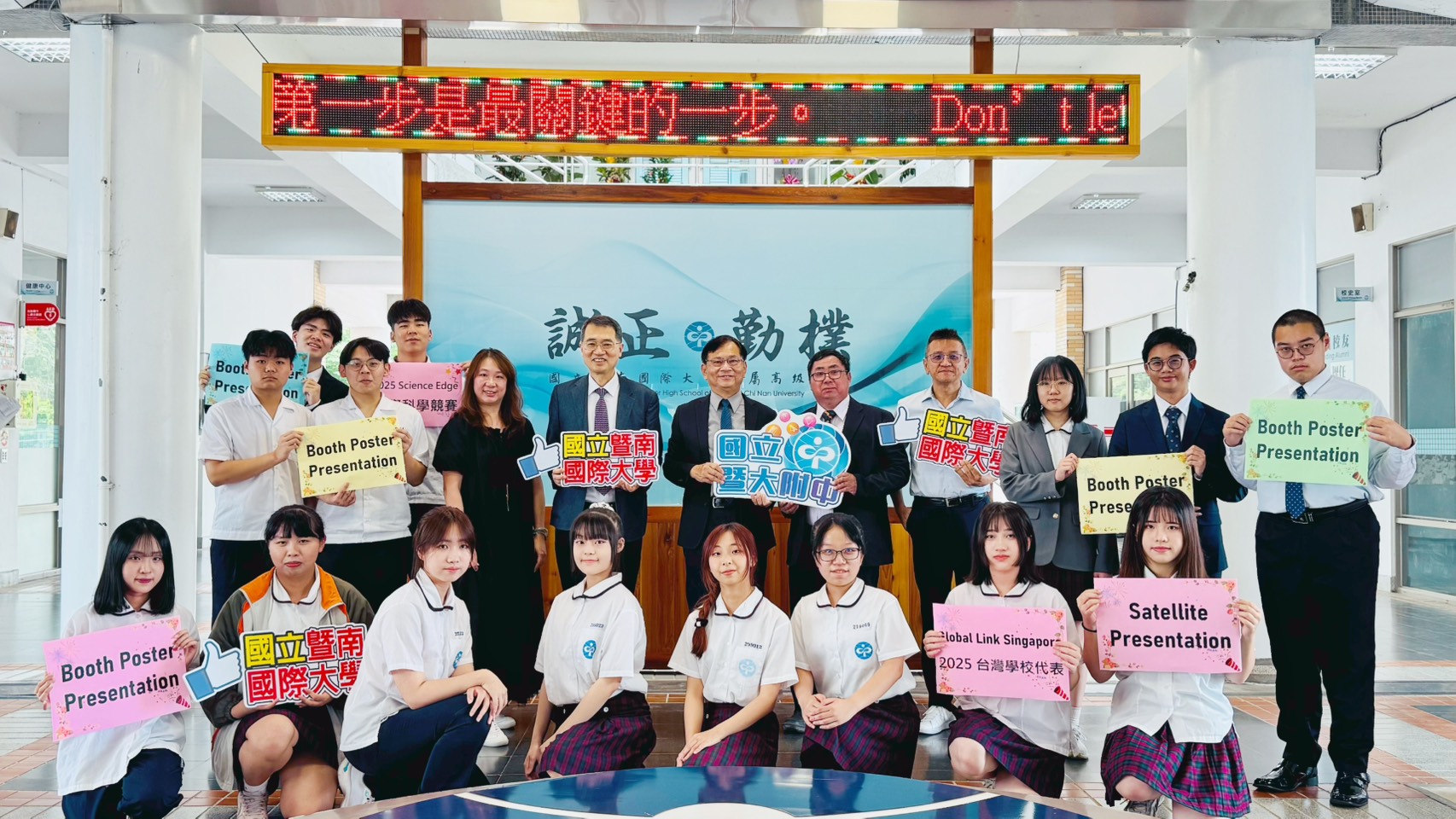2025 Global Link Singapore的台灣學校代表於七月即將代表前往新加坡參賽的陳貞、鄭宇喬二位同學指出,發想的主題內容比高中所學的基本學科更加艱深,需要耗費很多心力去理解與應用,感謝國立暨南國際大學應用材料與光電學系陳祥主任研究室團隊耐心引導下,讓我們逐步理解儀器運作、實驗原理以及科技應用,在實作過程中發現,原來高中學科的背景知識是具有生活應用的可能與價值,很幸運的是身為暨大附中的學生,可以擁有暨大提供的寶貴資源。