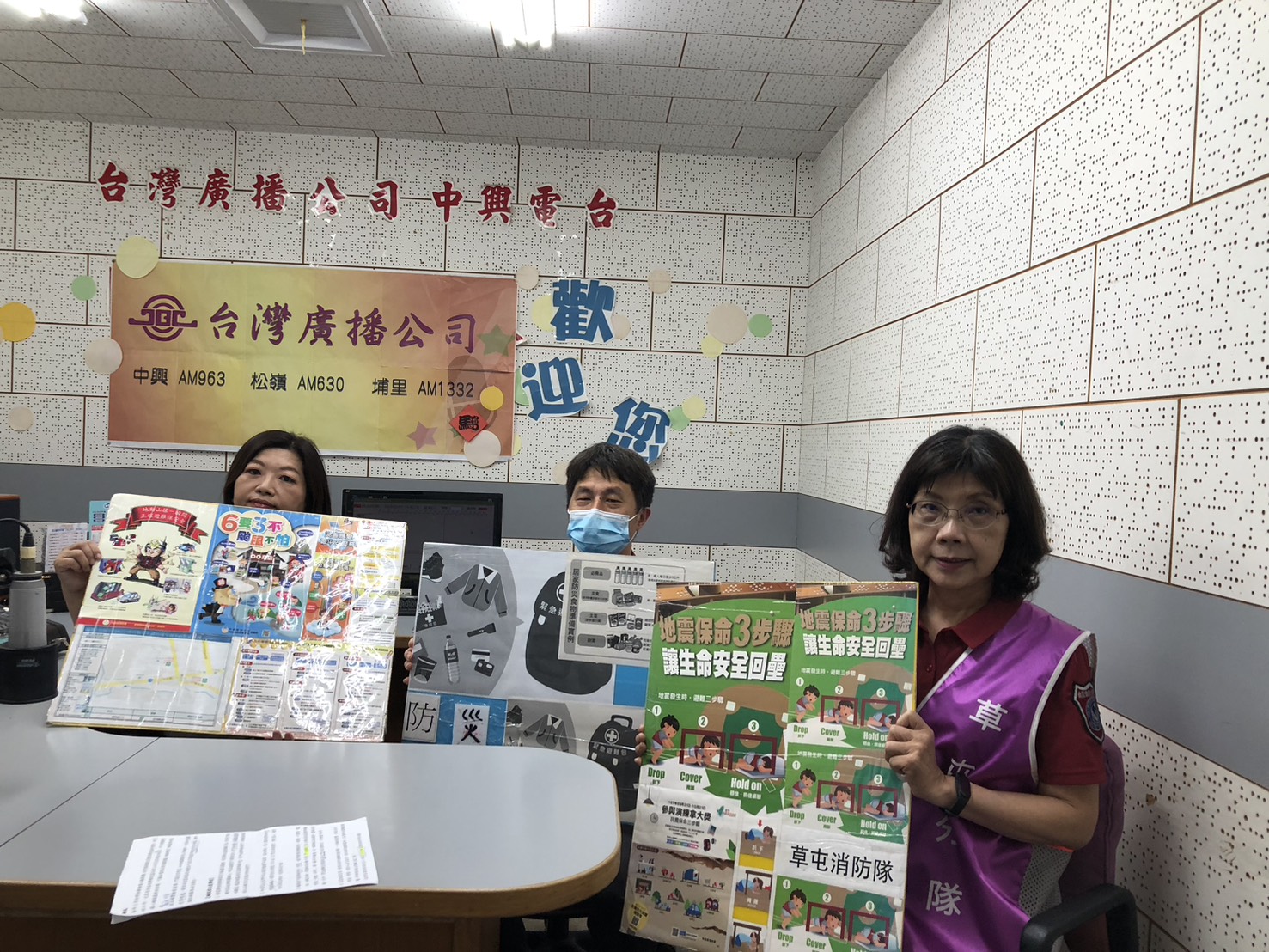 南投縣政府消防局低一大隊草屯分隊於114年05月07日在草屯鎮中興電台實施防災宣導,利用電台錄製防災宣導節目,教導民眾防震、防颱常識、輻射災害防救及防災地圖運用和全民國防等相關訊息。