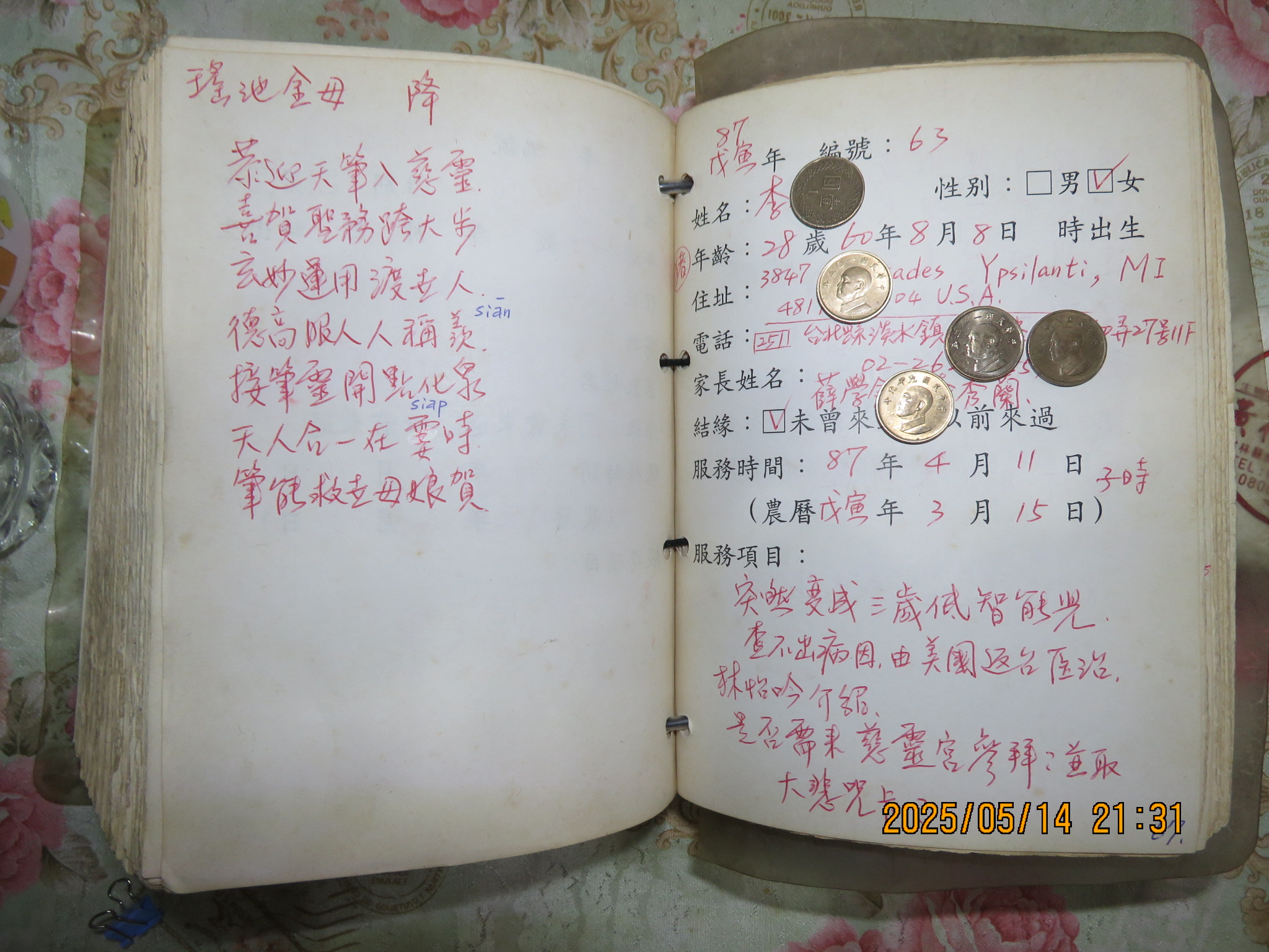 ★1998(87).04.10.(戊寅.03.14.)星期五巳時,友道(玄德)向 瑤池金母娘娘主席做如下的請示: