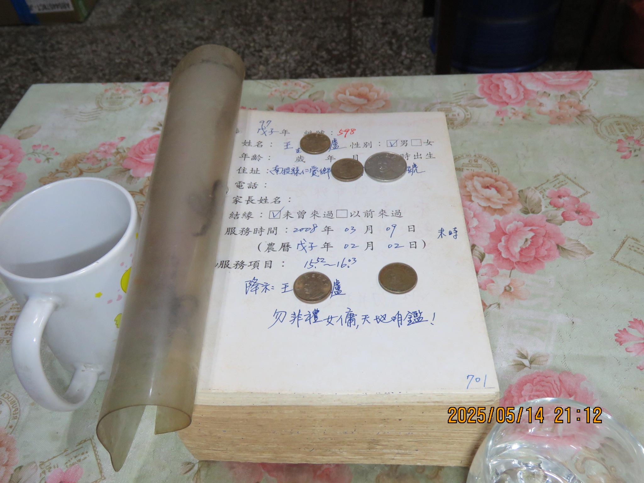 ★1998(87).04.11.(戊寅.03.15.)星期六亥時,友道(玄德)請示: