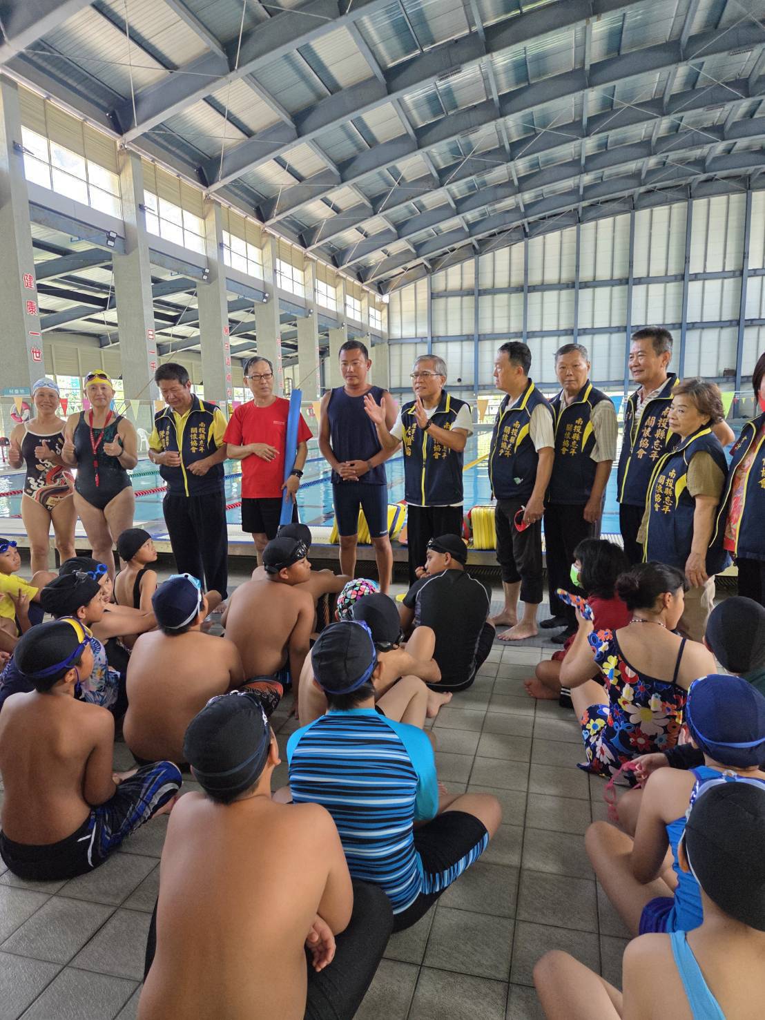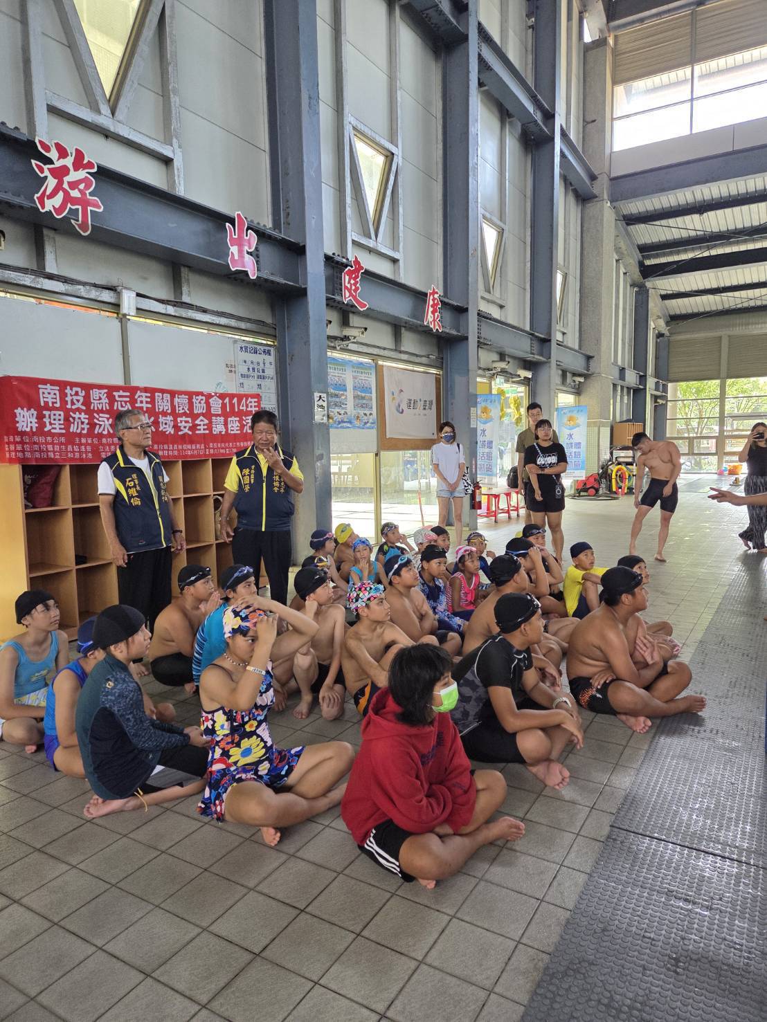 圖二南投縣忘年關懷協會在南投縣立三和游泳池舉辦「水域安全教育-防溺與自救」公益活動。(南投縣忘年關懷協會提供)