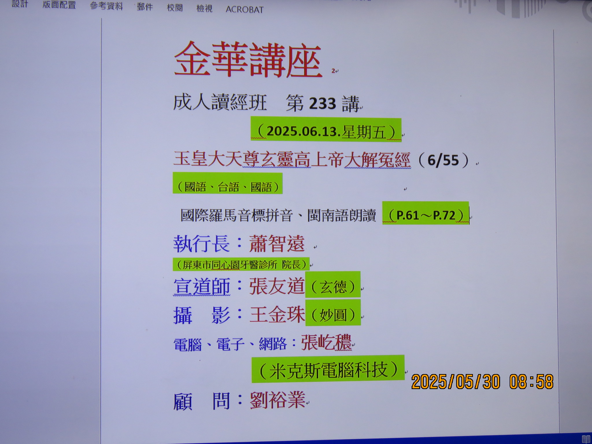 時間:2025(114).06.13.(乙巳.05.18.)星期五 08:01~08:15.