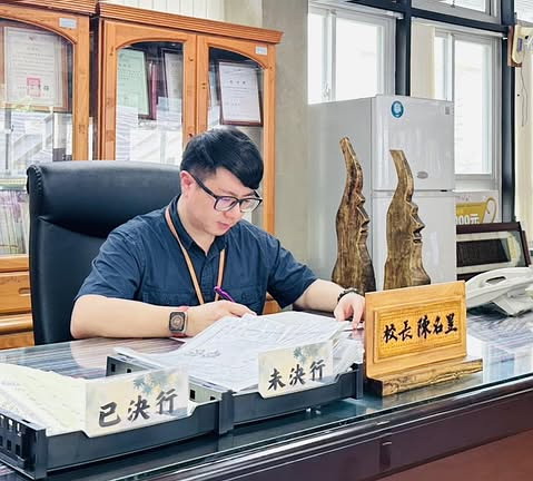 陳校長從新北市調回南投後,長年服務於南投縣教育現場,曾任三光國中導師、組長、主任,投入學生輔導、體育班管理與校園品德教育推動,深受師生與在地家長敬重與肯定。任教期間榮獲「南投縣特殊優良教師」與「教育部友善校園獎傑出學務人員獎」等殊榮,展現其在第一線教學與學務工作的優異表現。