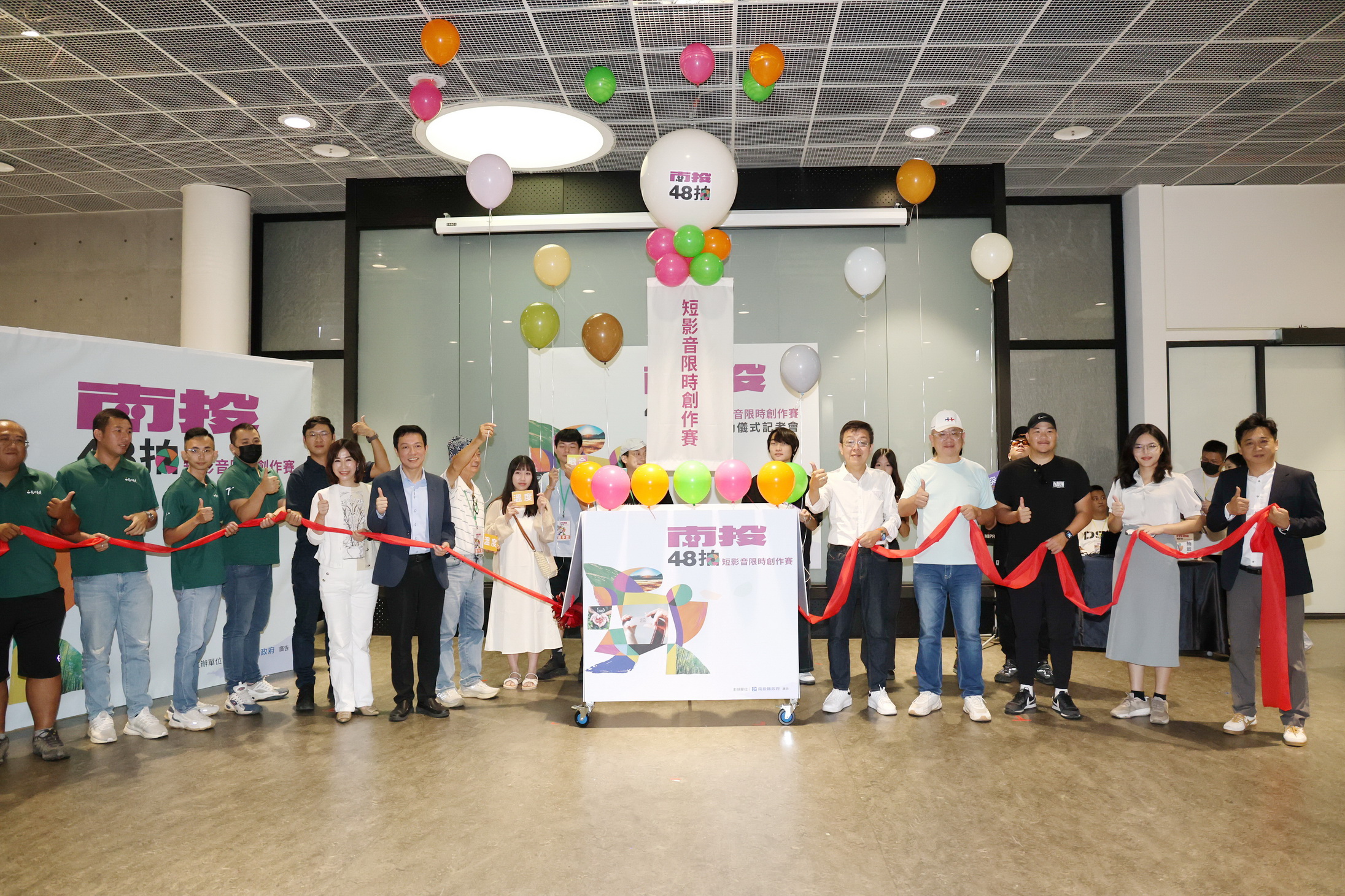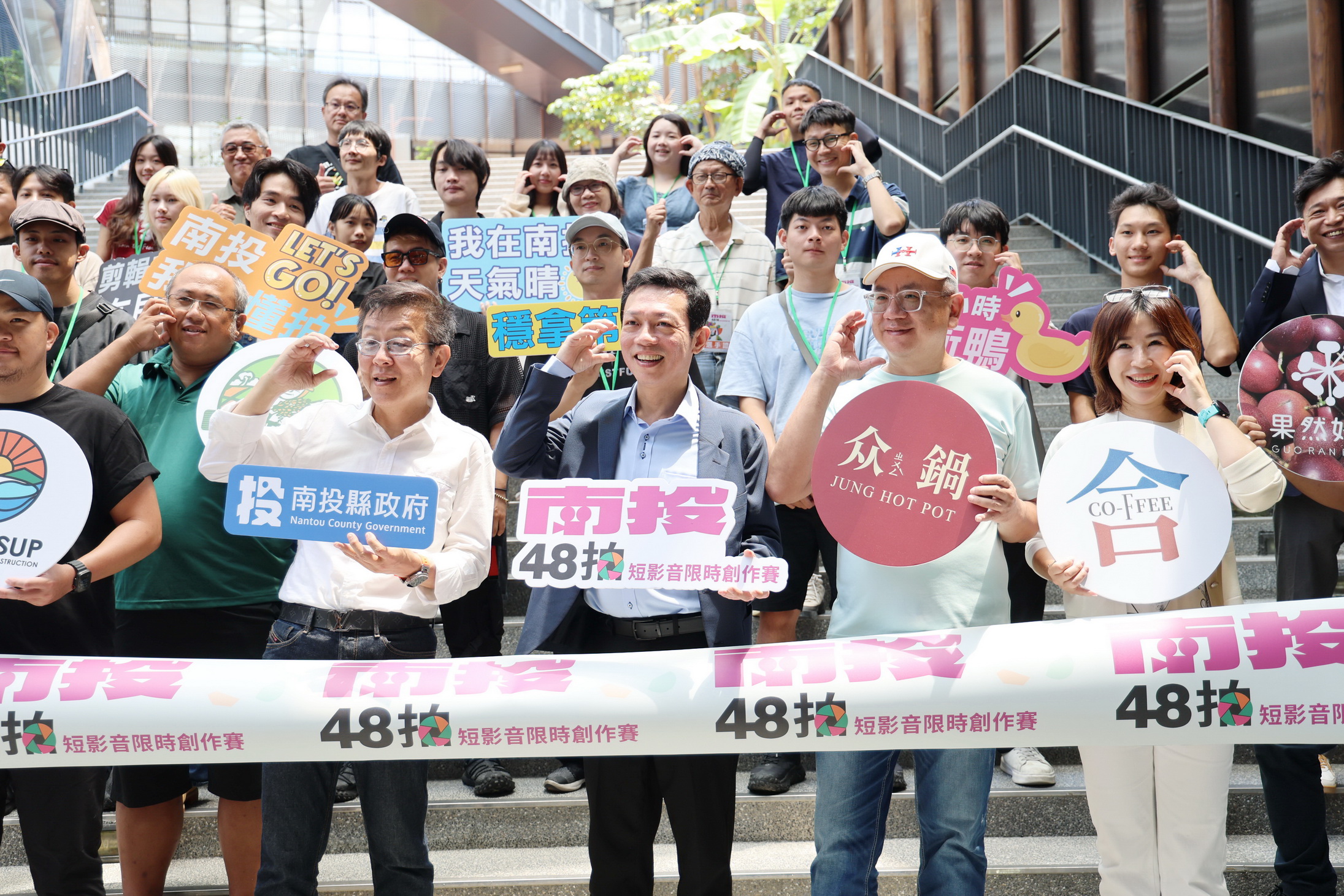 由南投縣政府主辦的「南投48拍短影音限時創作賽」19日在中台灣創新園區舉行決賽啟動記者會,縣府新聞及行政處長蔡明志帶領貴賓及8組晉級團隊一同拉開決賽序幕,並以鳴笛方式宣告48小時極限挑戰賽全面起跑。蔡處長預祝參賽隊伍拍攝順利,發揮創意,力爭首獎5萬元高額獎金;並期盼選手能在時間壓力下激發無限創意,以鏡頭呈現南投產業的多元魅力,將這片土地的美好傳遞給更多人。