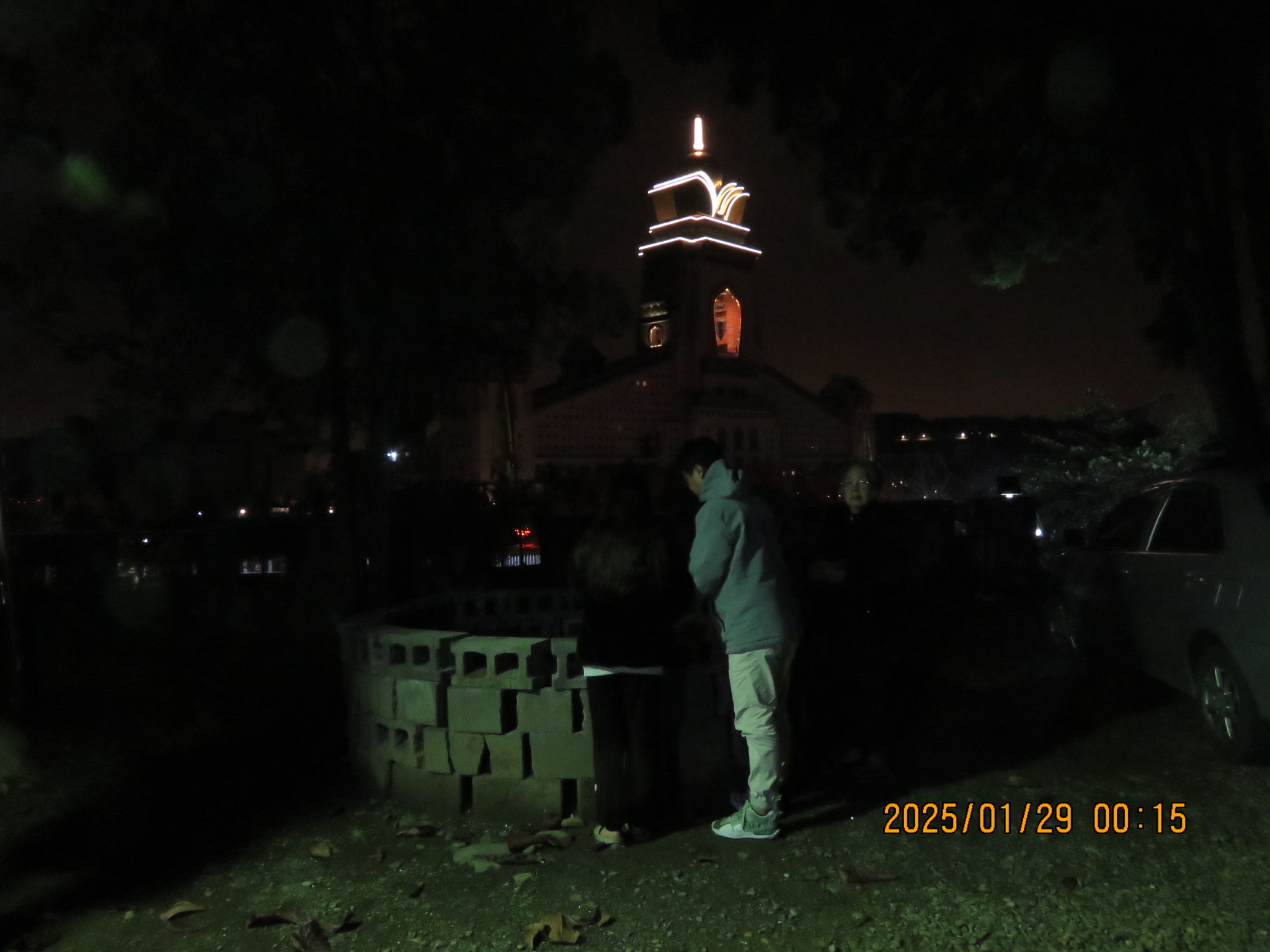 2025(114).01.29.(乙巳.01.01.) 星期三子時( 第7次照片,第372天),張友道、王金珠、張予柔、張凱翔抵達埔里金華殿,焚化共15日(甲辰.12.16.~乙巳.01.01.)、45張(3張X15)的『無形文』功課、作業,交給 瑤池金母娘娘主席,恭請 鑑核!(第25次呈繳無形疏文)