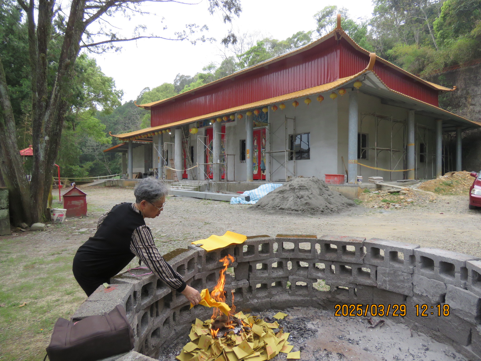 2025(114).03.29.(乙巳.03.01.) 星期六( 第7次照片,第431天),張友道、王金珠抵達埔里金華殿,焚化共15日(乙巳.02.16.~乙巳.03.01.)、45張(3張X15)的『無形文』功課、作業,交給 瑤池金母娘娘主席,恭請 鑑核!(第29次呈繳無形疏文)