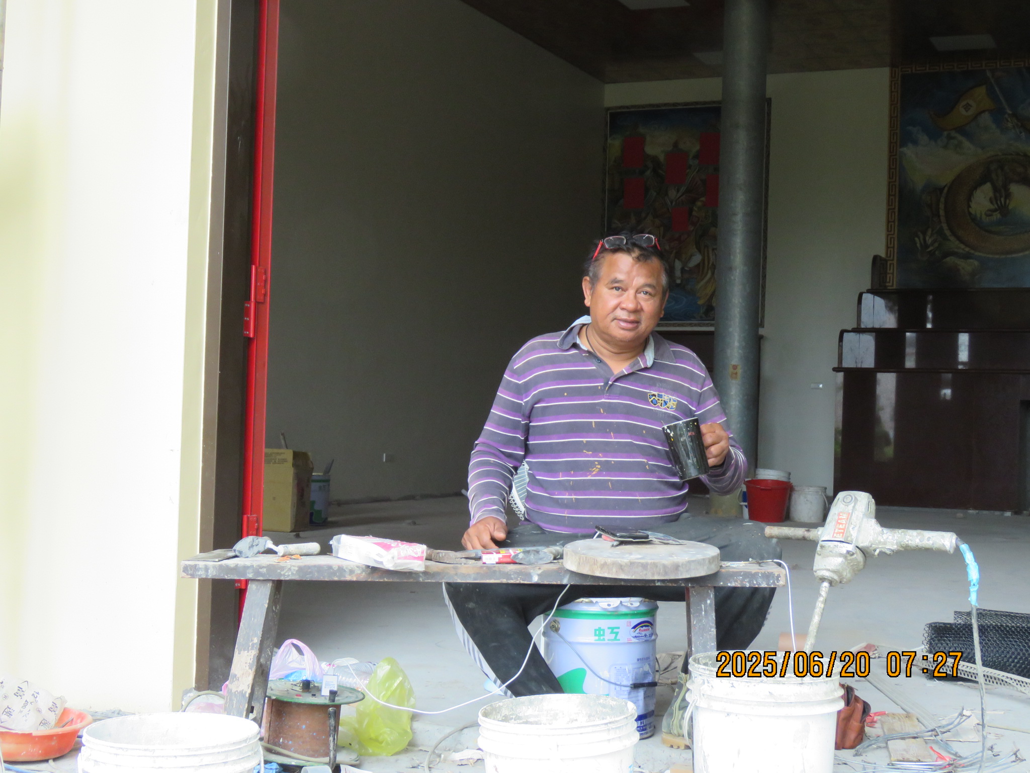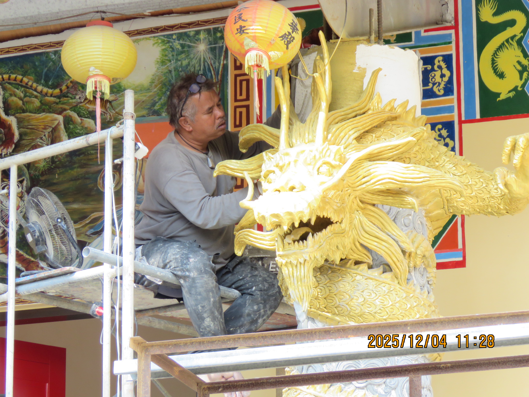 2026(115).01.03.(乙巳.11.15.) 星期六( 第7次照片,第711天)泰國彩繪雕刻師傅,於2026(115).01.01.(乙巳.11.13.) 上午10點30分,在金華殿的任務已告一段落,計領酬勞金共台幣472500元。一年多來的辛勞,金華殿上下同仁謹致上最高的謝意!