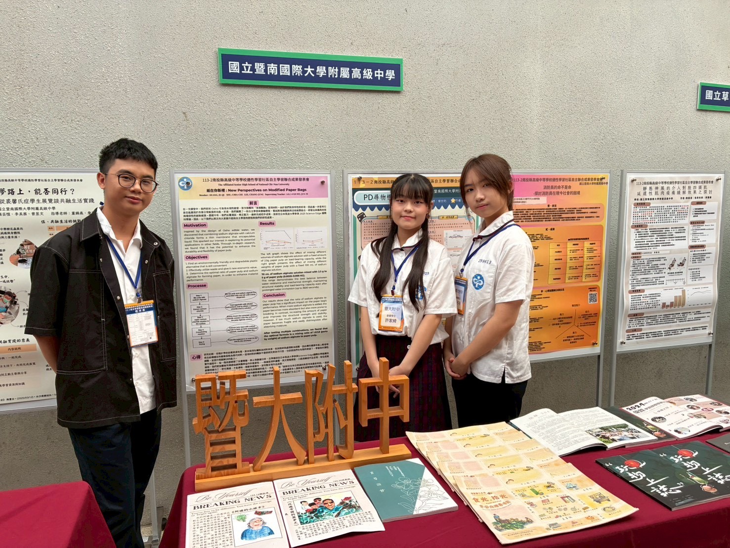 暨大附中於2025美國AII達文西國際發明獎,以作品「食再袋!海藻酸鈉與廢棄蛋殼的結合」榮獲金牌,學生黃子祈、許家綺與李昌融三位同學,在駱奕帆老師指導與吳俊誼老師專業諮詢下,繼續以在地廢棄物進行創新研究,成功研發出兼具環保、耐用與防水特性的創新型環保紙袋材料,此研發創意深受評審團隊青睞。