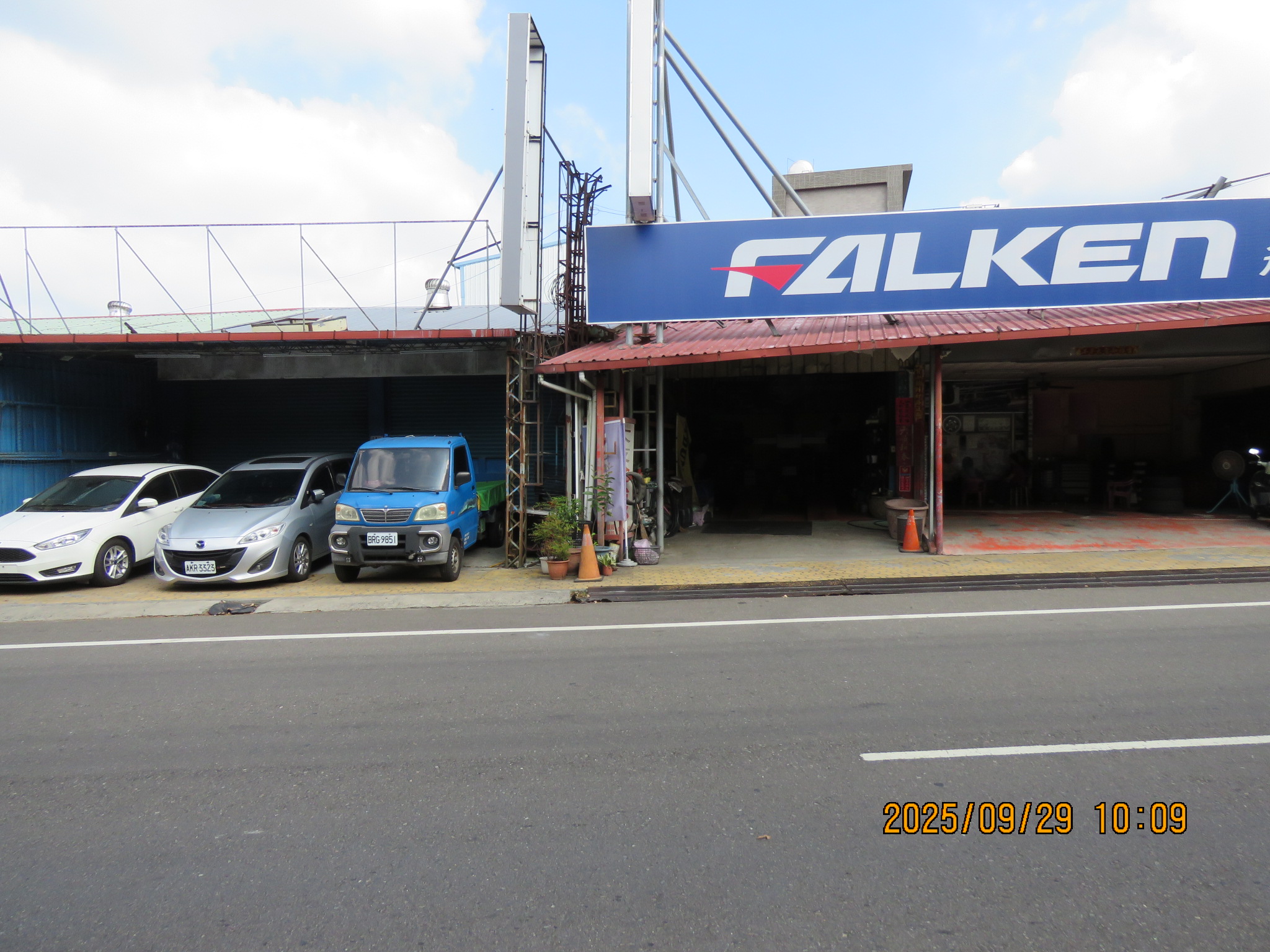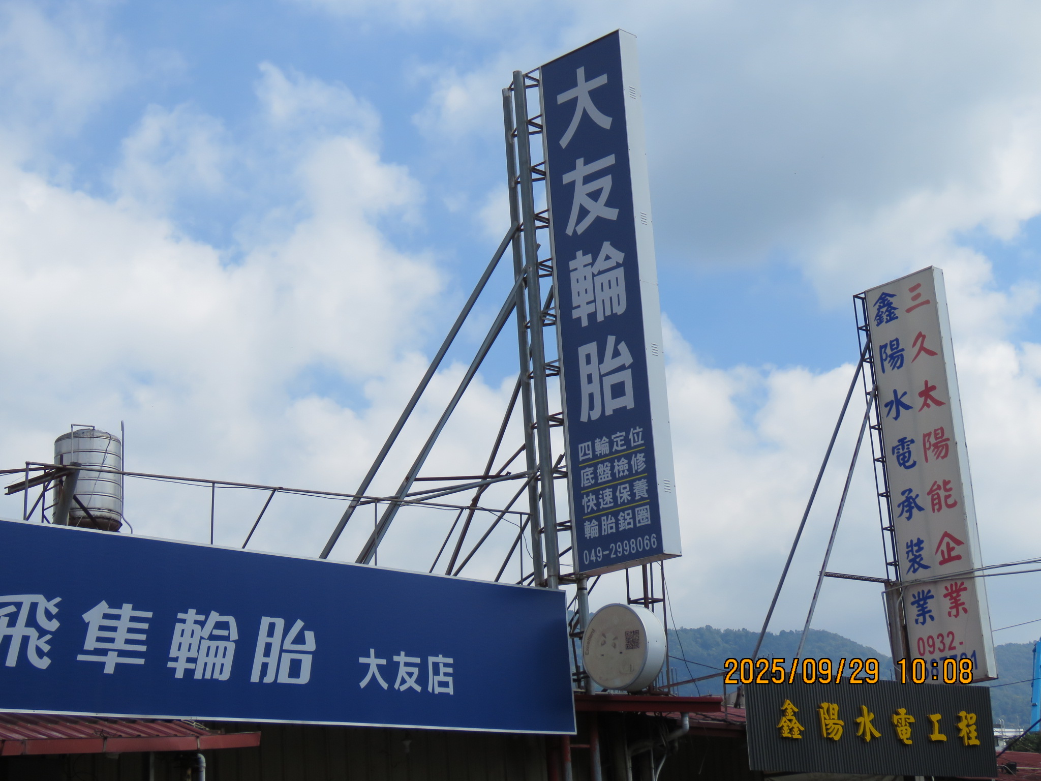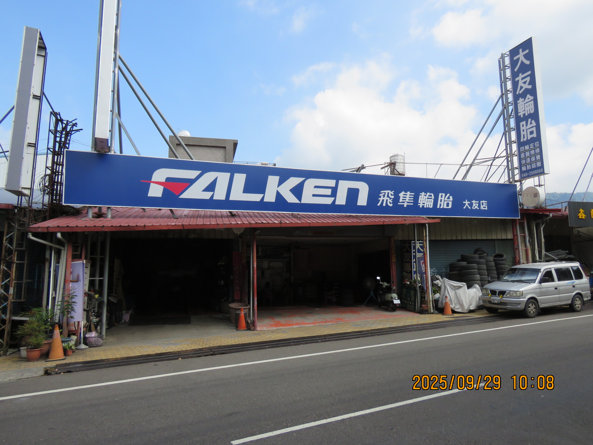 2025(114).09.13.(乙巳.07.22.)星期六12:45~12:48,路過『大友輪胎行』,由於幾天前,發覺胎壓有些不足,於是停在店前,請求幫忙補足胎氣。事後蕭老闆告知,轎車四輪的胎壓為28、28、28,左後輪為20,目前已灌足為38、38、38、40。由於當時我另有急事不便久留,蕭老闆告訴我:『請下次路過時,進店內,讓我徹底檢查,為何左後輪會消風﹖』