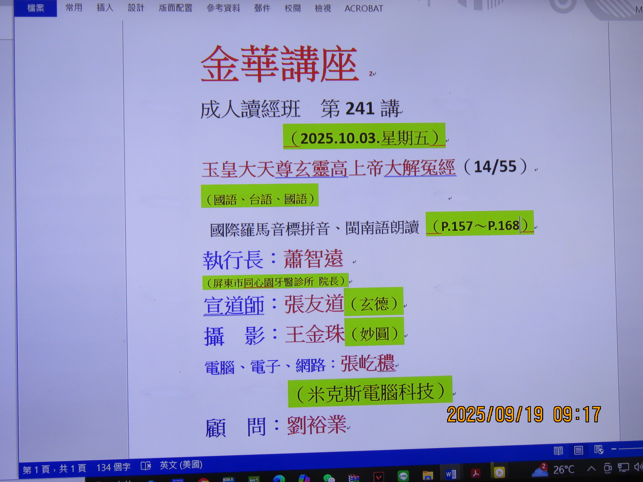 課 程:玉皇大天尊玄靈高上帝大解冤經
