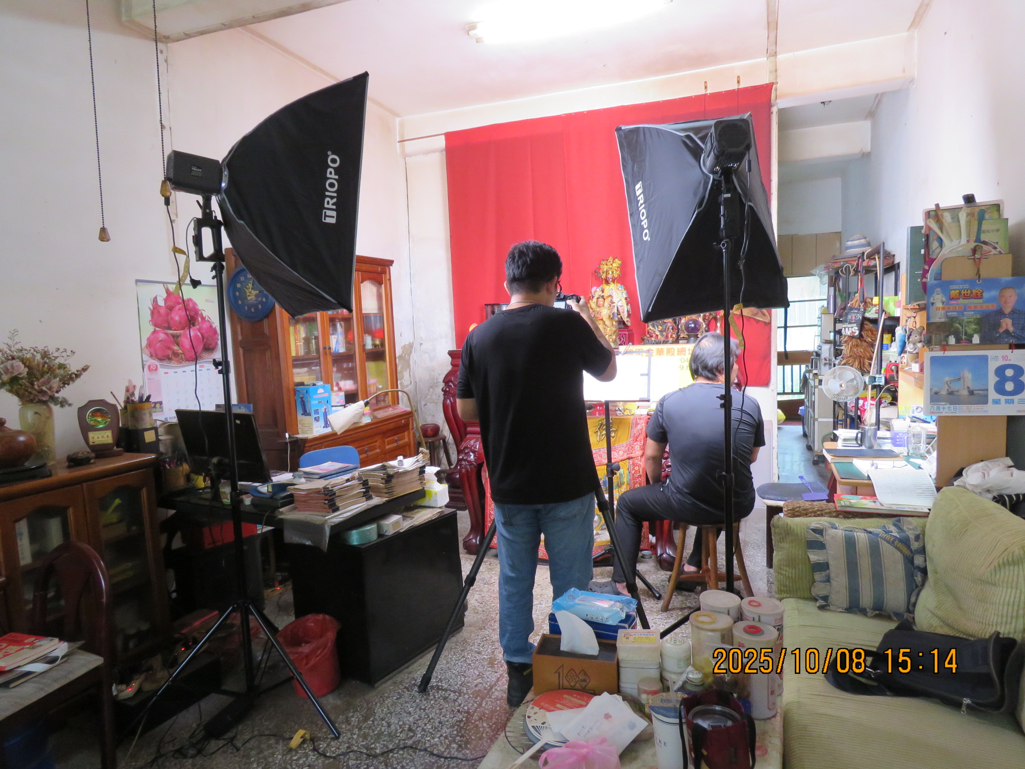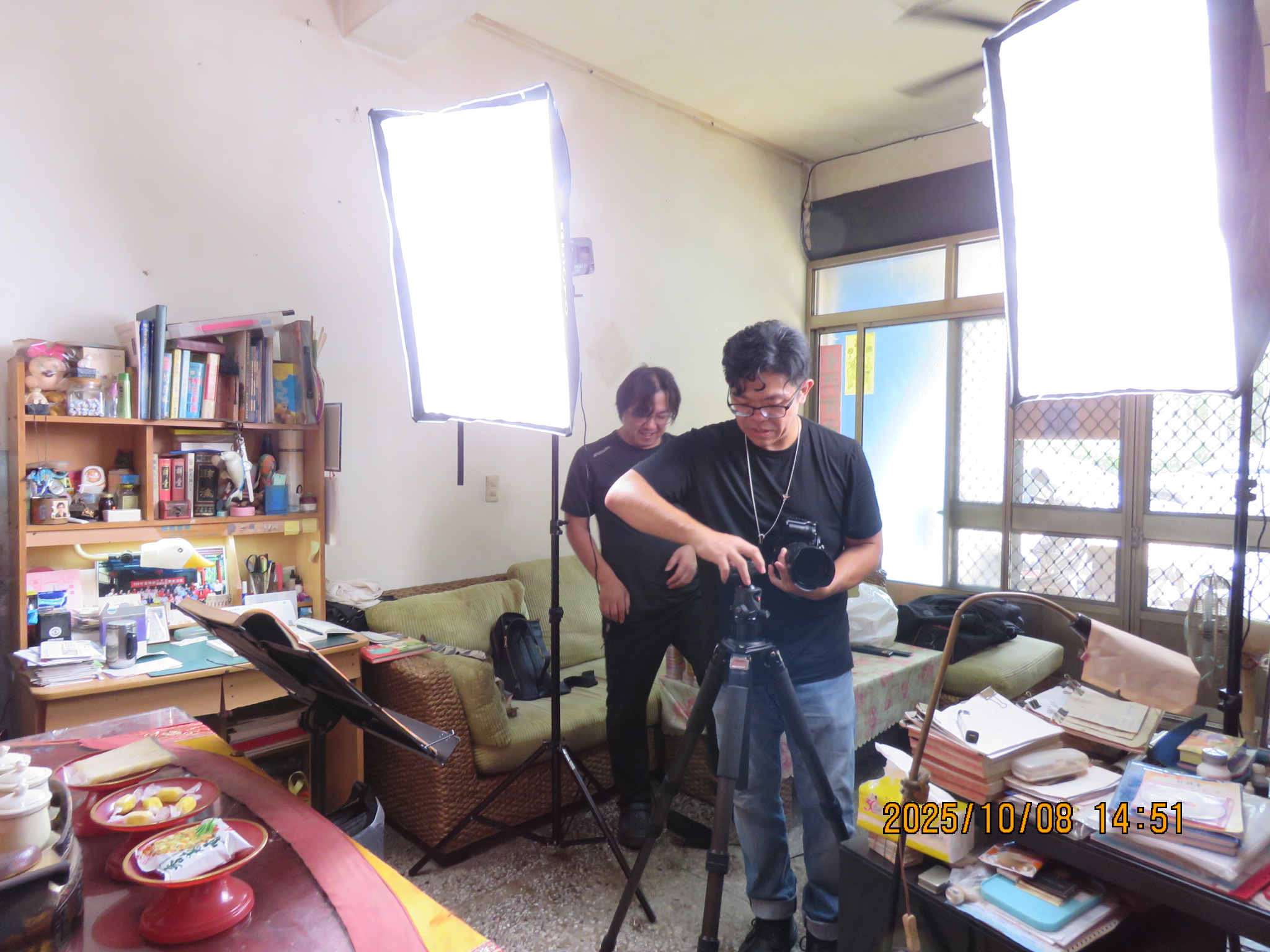 已改名王昱荏多年的王年偉,是一位執業多年的專業攝影師,2025(114).10.08.(乙巳.08.17.)星期三13:28~18:14,第二次來訪,身邊多帶了一位助理~簡弘凱師兄。這次是專程來拍攝35年前〔1990(79).10.23.(庚午.09.06.)星期二~1995(84).03.12.(乙亥.02.12.)星期日〕,玄德法師、妙圓法師所主編的『天音傳書』, 仙佛前後共降鸞五百篇文章(譯本,連同總目錄共十大冊)。原來這些文章(500篇已刊登350篇在『天音傳書』),是2025(114).10.17. 玄德、妙圓教完『金華講座~親子讀經班』之後,要繼續刊登的!