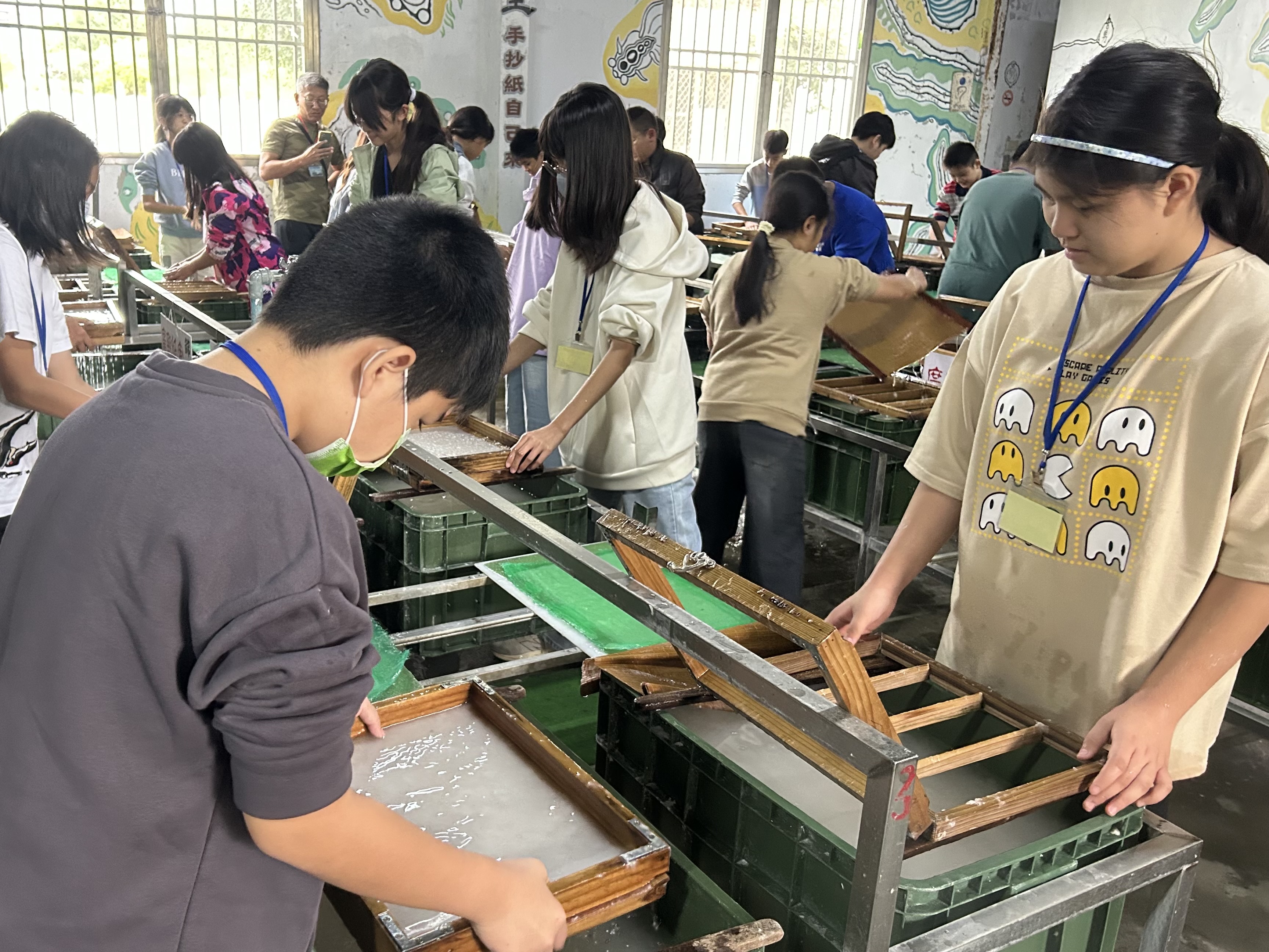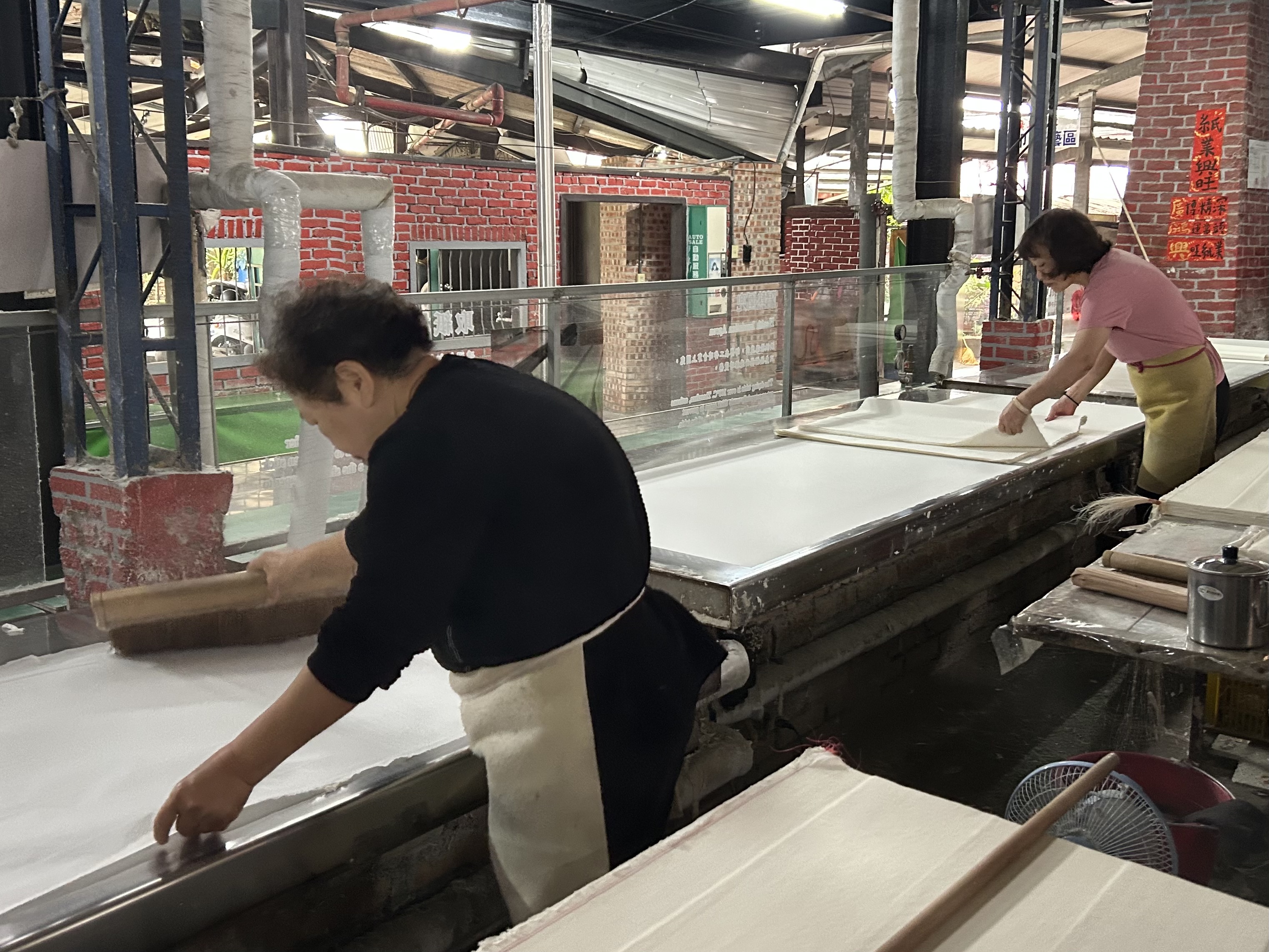 行程第一站來到埔里知名的「廣興紙寮」。這裡不以大型機械為賣點,而是用最古老的方式讓紙張「慢慢被做出來」——天然纖維、無毒蒸煮、手工打漿。參團者親手抄起一張紙,看著細絲沉澱成形,也認識紙張與自然共存的可能。