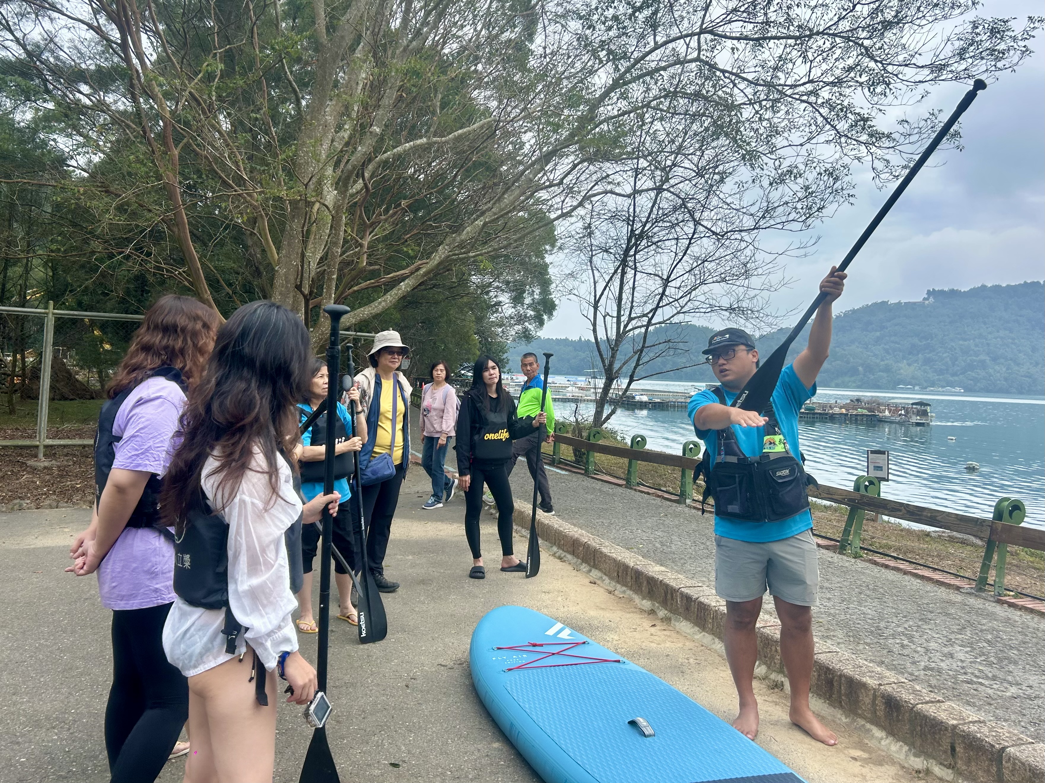 第二日上午,採線團於日月潭展開低碳的 SUP 立槳體驗。比起油耗水上活動,SUP 更能貼近湖面,也更能感受自然的節奏與力量,是近年南投積極推廣的綠色體驗之一。