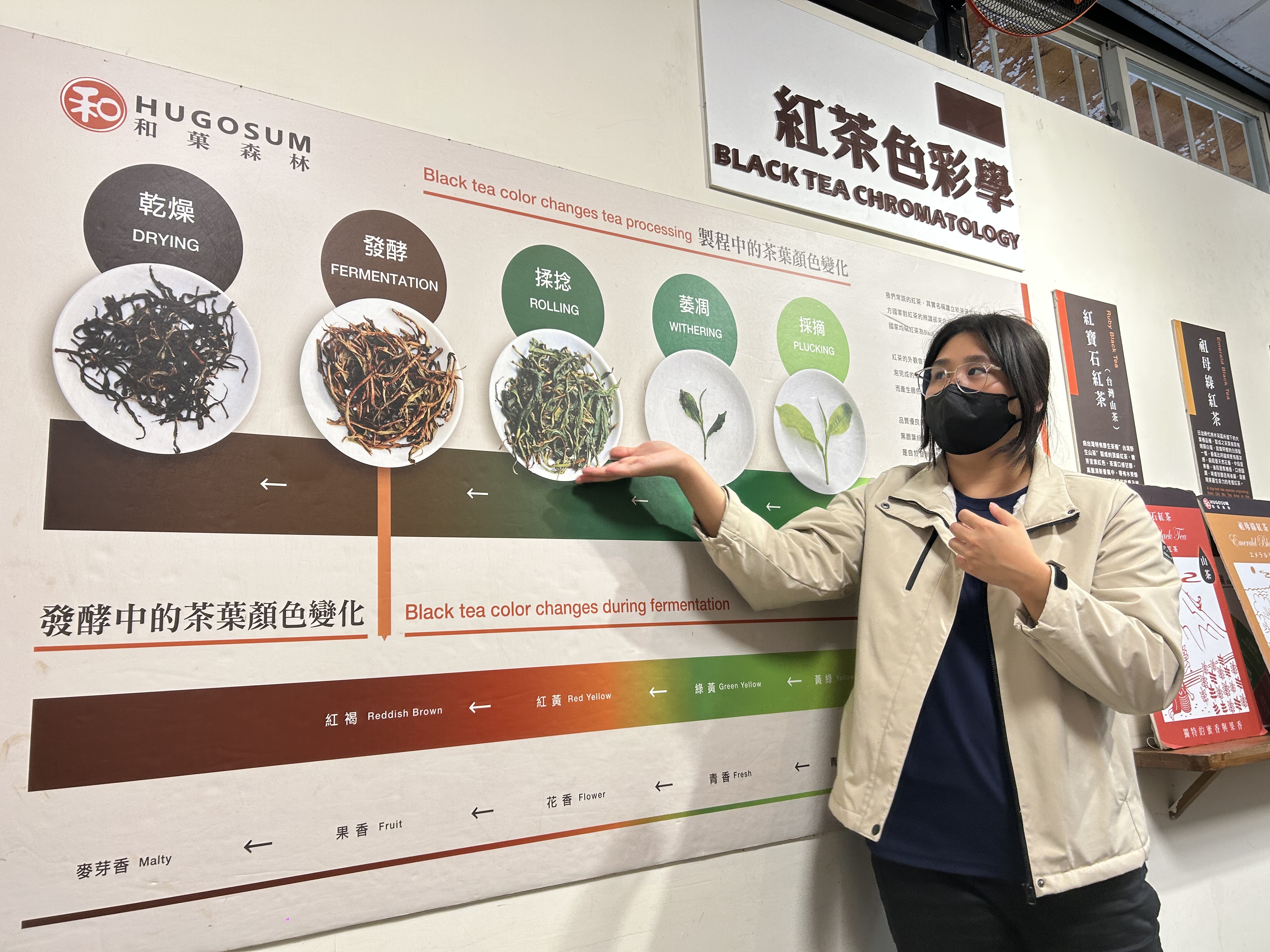 在「禾菓森林」紅茶園區,導覽員帶領大家走進茶產業的永續故事,從種植管理到在地加工,每一步都講究友善與品質。品茶時,旅客不只聞到香氣,也品到產地的價值。