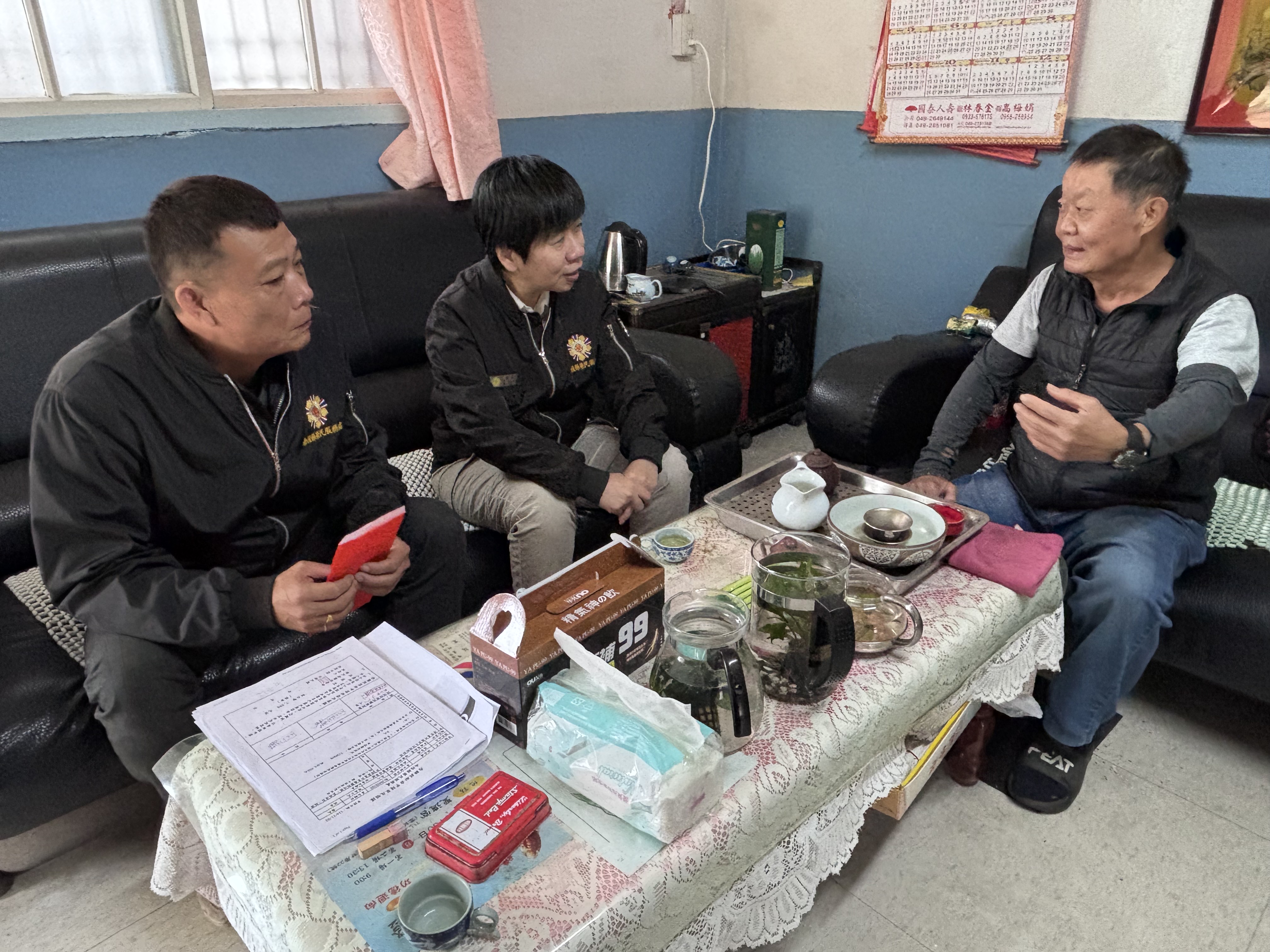 近日氣溫驟降,冷空氣頻繁南下,使長者健康風險大幅提升。南投縣榮民服務處即日起全面啟動冬季關懷行動,透過到府訪視與電話關懷雙軌並行,主動掌握轄內榮民及眷屬的健康與生活狀況。南投榮服處王怡文處長偕團隊前往多個榮民家庭探視,提醒長者留意早晚溫差變化、適時添衣並保持室內溫暖,以避免低溫引發心血管疾病或慢性病惡化。
