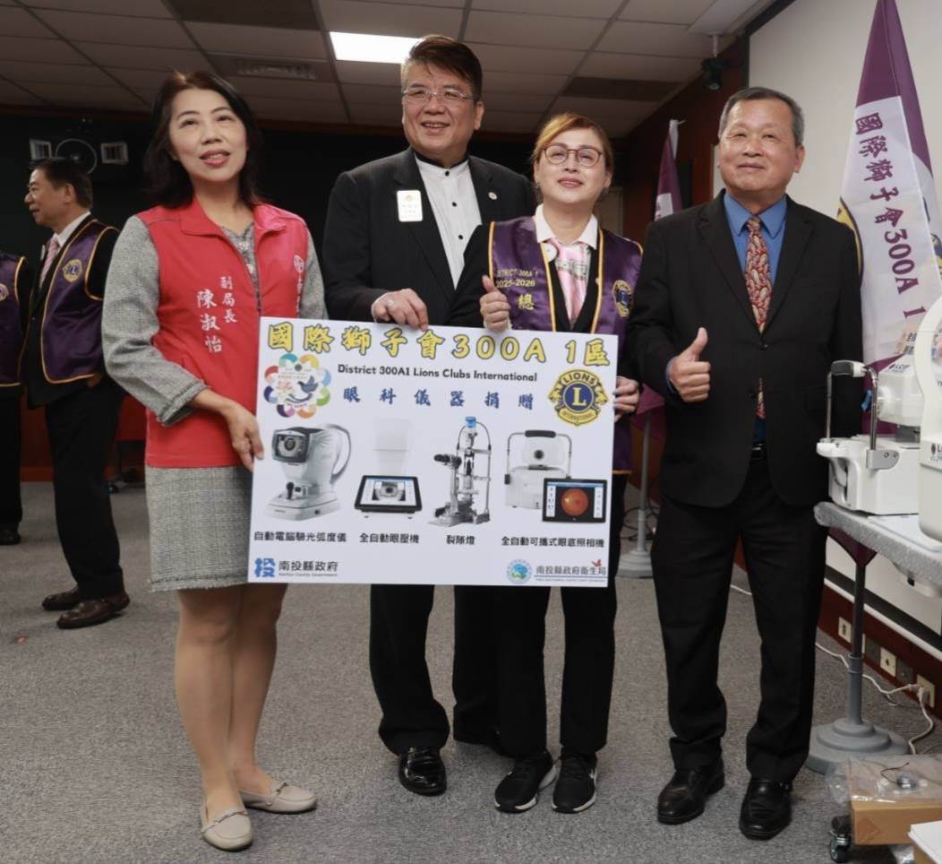 國際獅子會300A1區3日捐贈先進眼科設備給南投縣,包括數位式裂隙燈顯微鏡、自動電腦驗光儀、全自動眼壓機及全自動眼底攝影儀等專業儀器,未來將配置到醫療資源較薄弱的鄉鎮衛生所,讓民眾就近享有高品質眼科檢查。