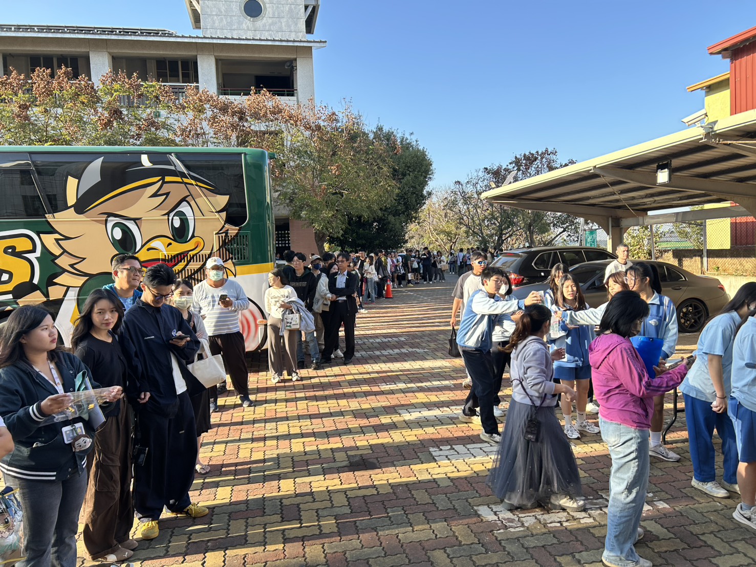 圖三台鋼雄鷹飛入南投三光國中的簽名活動相當轟動,約有100多位家長民眾湧人參與(三光國中提供)。