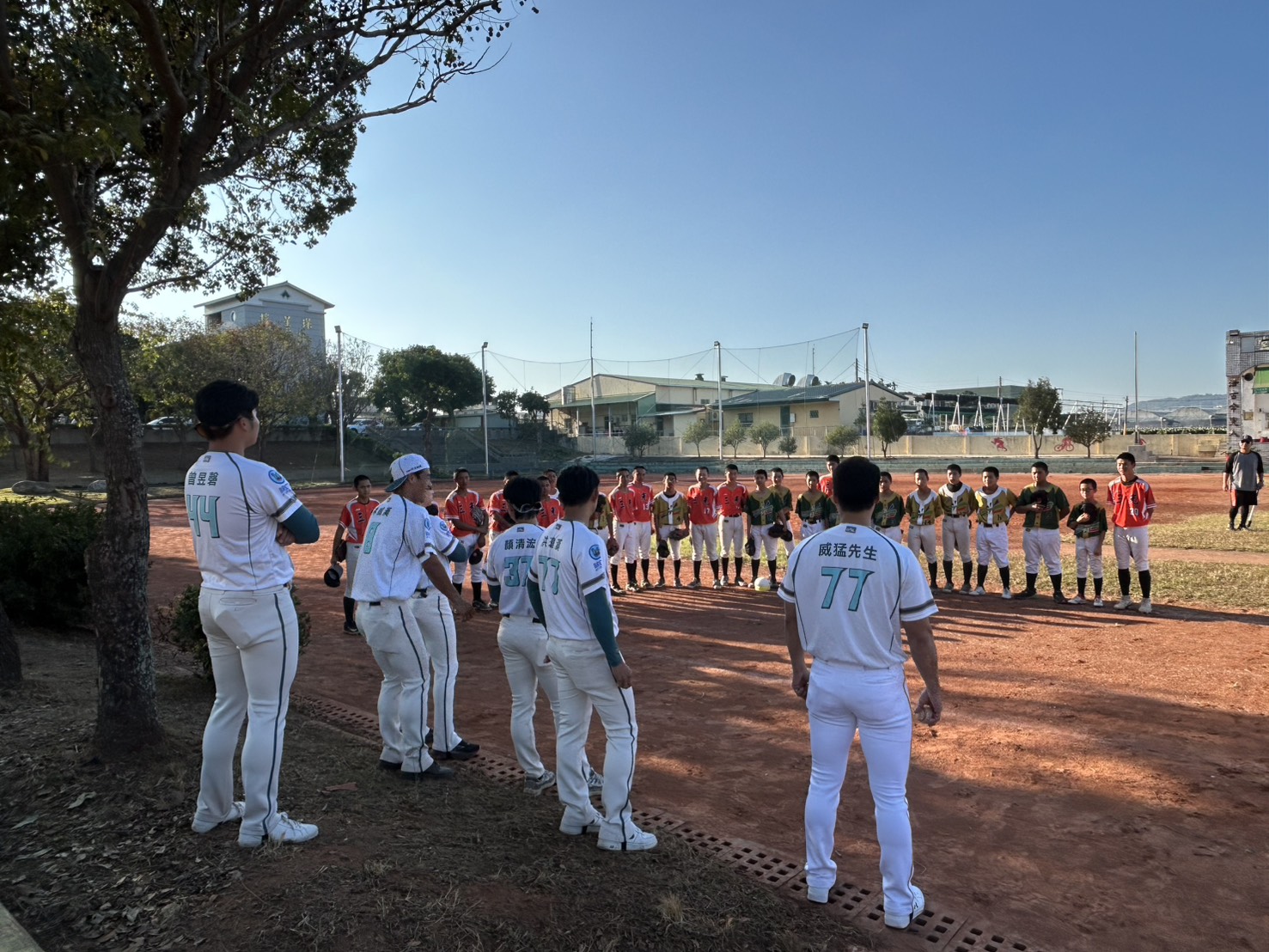 圖二台鋼雄鷹給南投三光國中棒球隊現場球技指導。(三光國中提供)