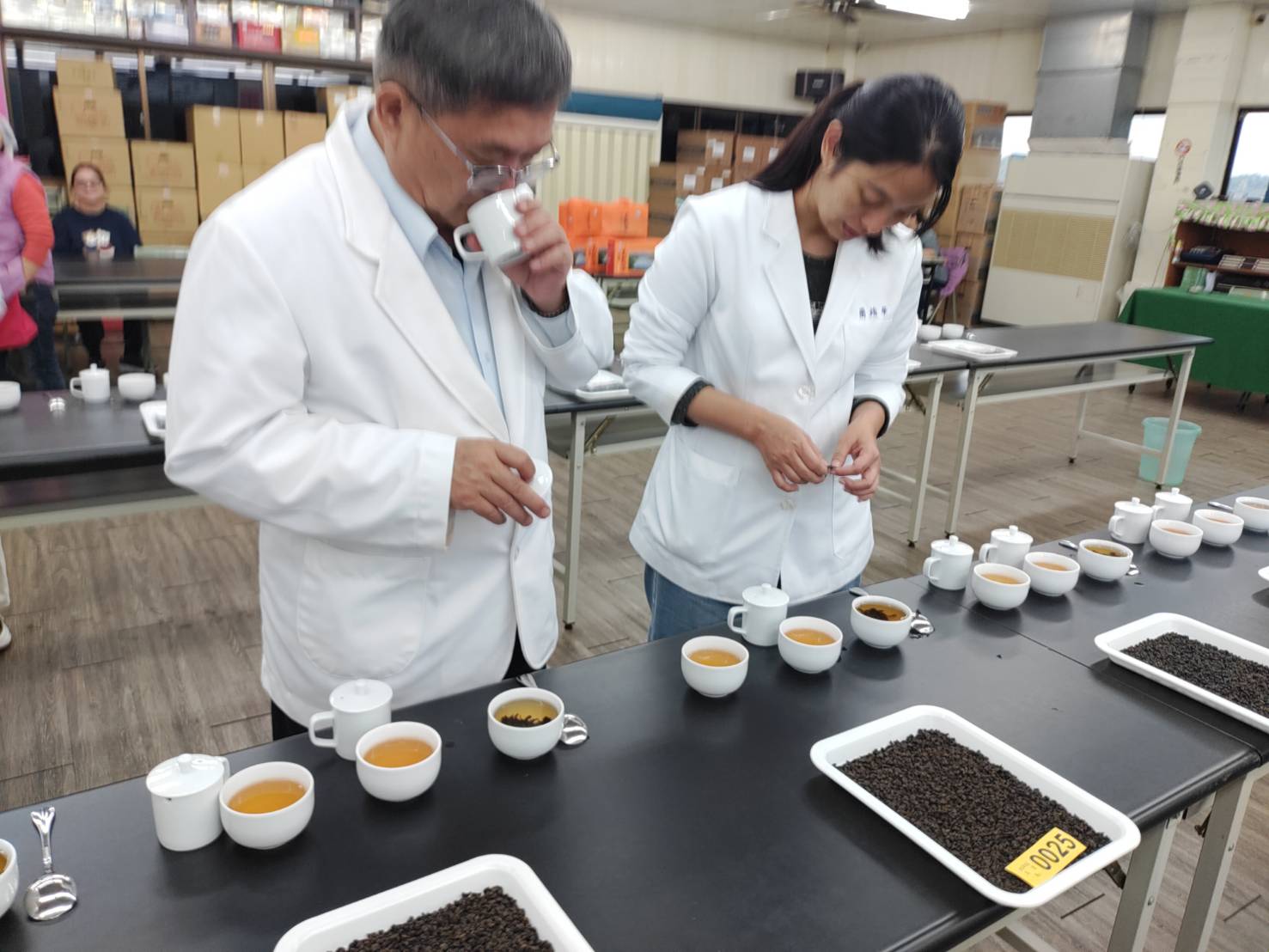 凍頂合作社114冬季茶賽烏龍組計有986件參賽、新品種有269件 ,合計1255件,初審由該社評茶班陳靜玟班長領軍20多員初審班員執行先淘汰有陳味異味等茶樣、第二階段複審,聘請農業部茶與飲料作物改良總場秘書吳聲舜、農業部茶與飲料作物改良場魚池分場簡靖華助理研究員,再評選得獎茶進入特等茶王,全程茶香飄逸,今天上午成績揭曉。