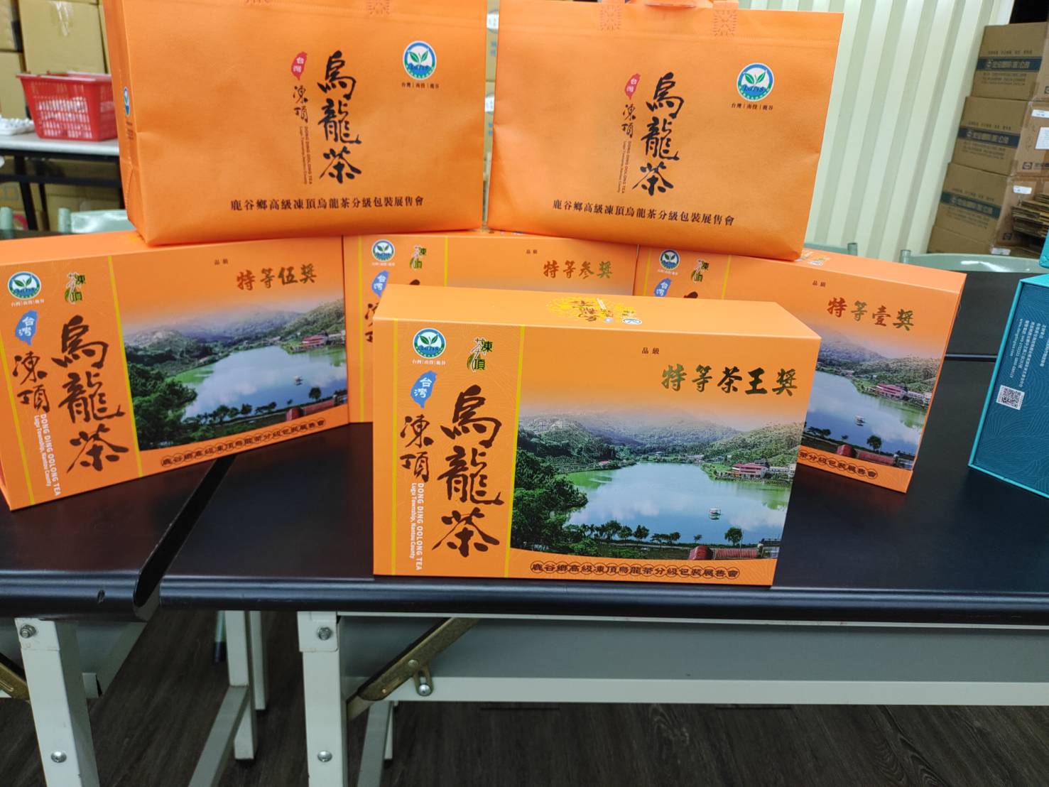 新品種的新包裝,我們也是用Tiffany的顏色,是橘色的很亮麗。還有橘色手提袋也是一樣,所以這次合作社的包裝,我們真的是非常用心,在幫忙推廣這些茶農很辛苦烘焙出來的比賽茶,所以這次雖然說參賽樣式不多,但是我們相信茶農他們都會得到很好的成績,在銷售方面,也能夠有創造更好的佳績。