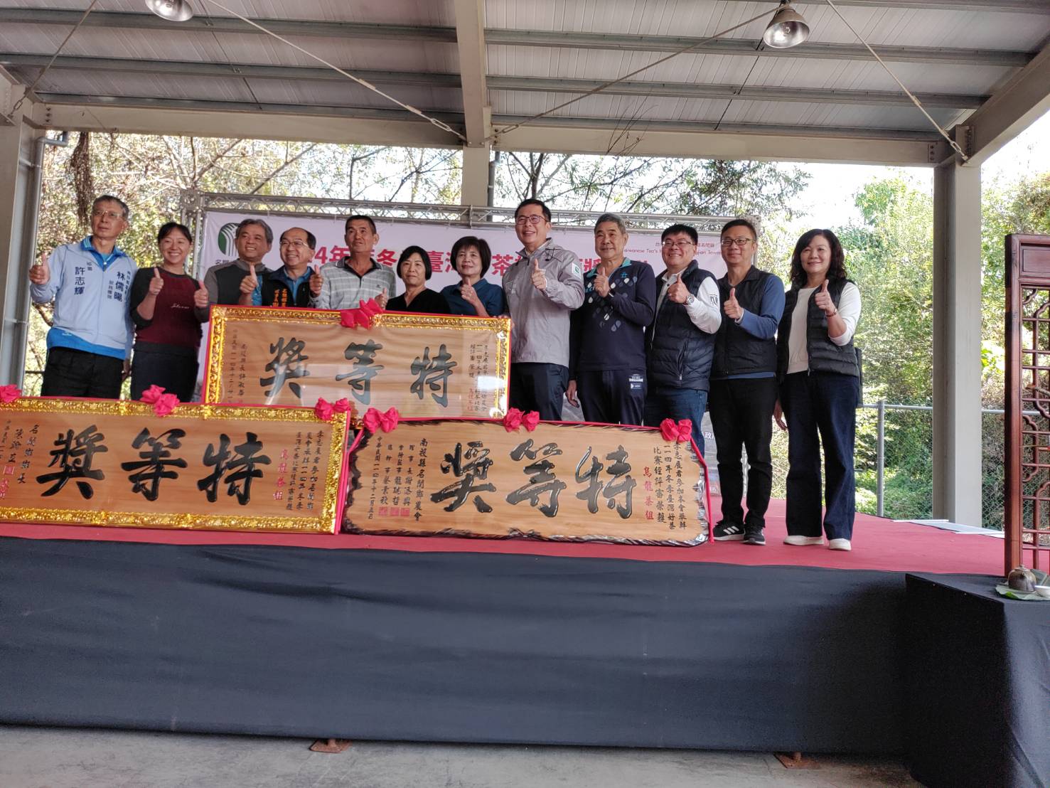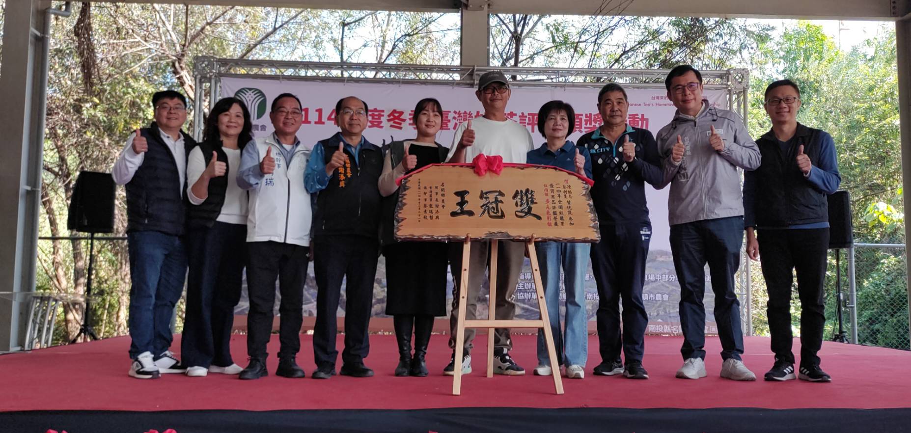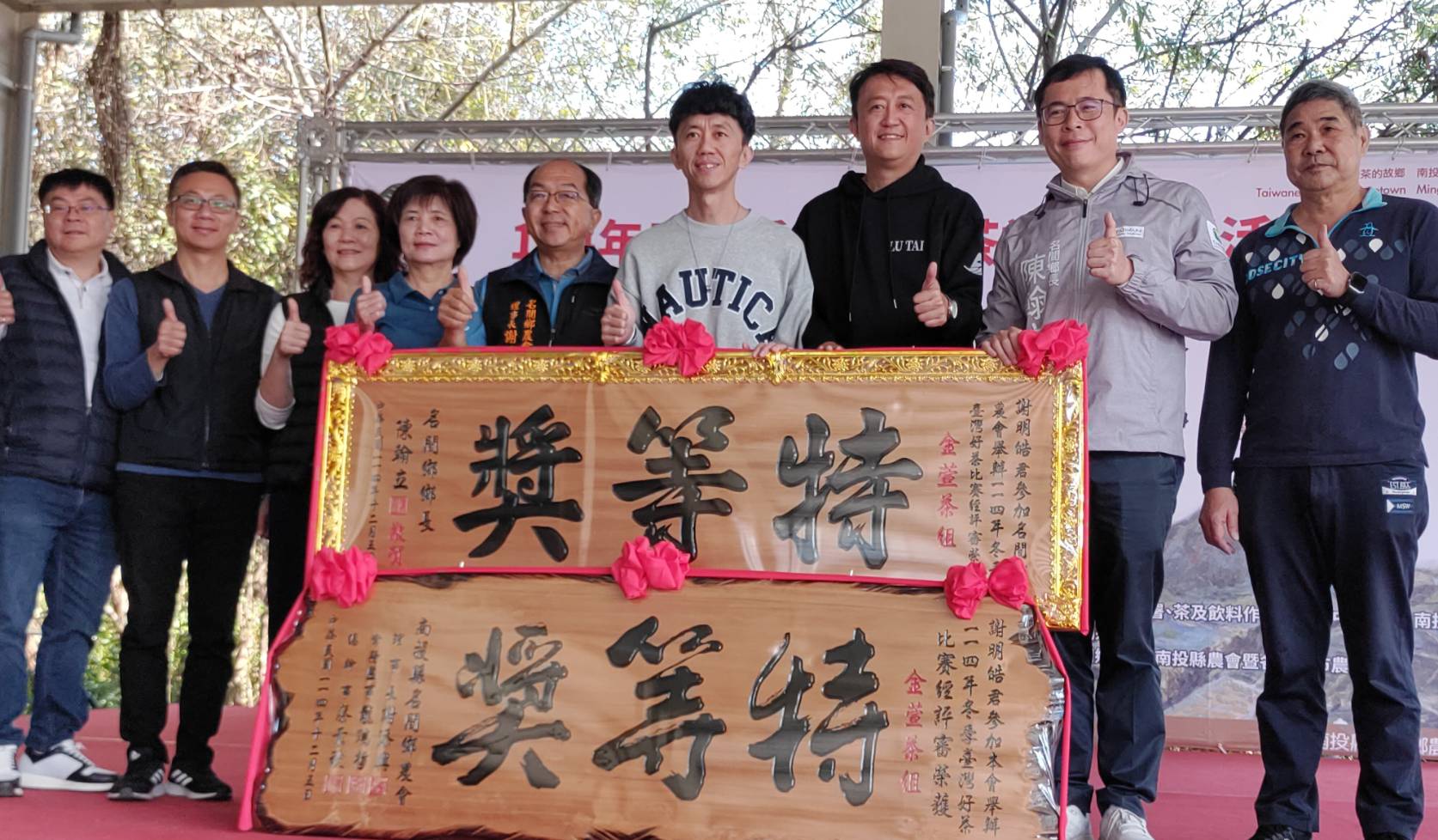名間鄉農會辦理「114年冬季臺灣好茶比賽」,共計320件報名參賽,經過初評及複評,成績於5日公布,並於21日在農會廣場舉辦頒獎典禮。烏龍組特等獎及金萱組特等獎分別由李志展及謝明皓獲得,副縣長王瑞德到場,代表縣長許淑華頒發特等獎匾額,肯定得獎者在茶葉種植上的用心。