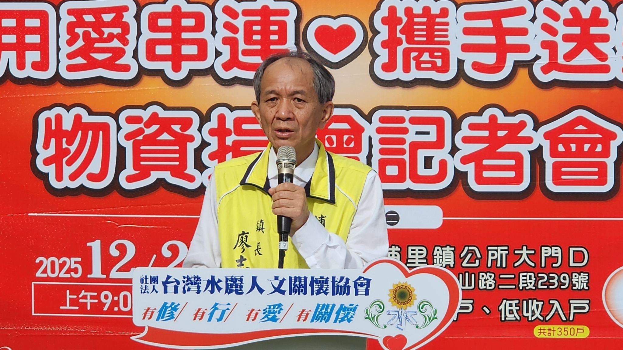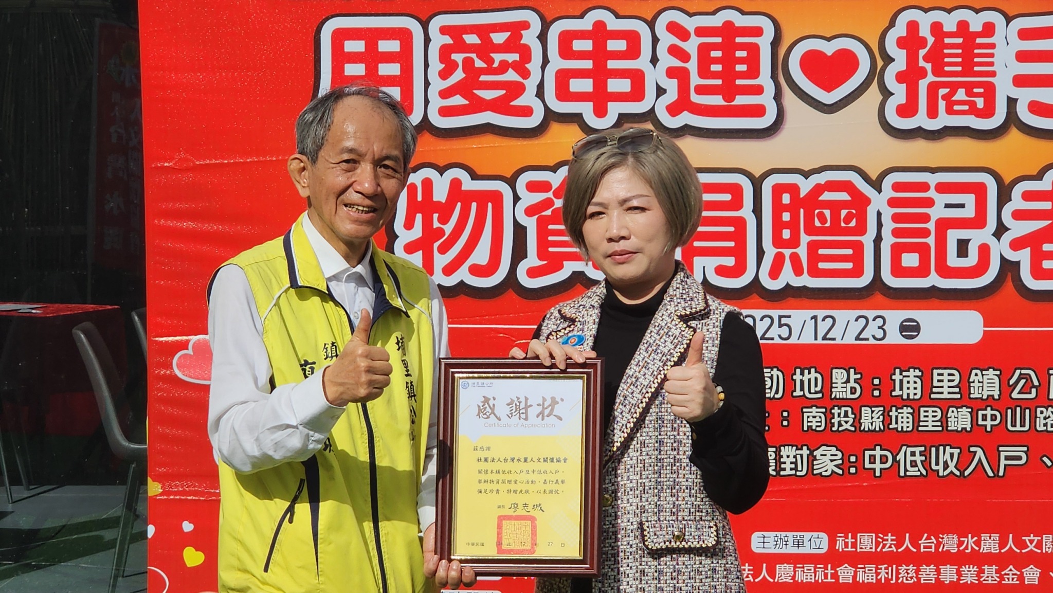 鎮長廖志城也說,看到台灣水麗人文關懷協會將社會的溫情在寒冬中送進埔里,感到無比的溫暖與感謝,這份愛心,不僅僅是物資,更是一份鼓勵和力量,期盼這份善行能像一盞燈火,吸引更多志同道合的社會人士共同響應,讓這份愛心能不斷延續,讓這些需要關懷的鄉親朋友,都能歡喜、平安地迎接嶄新的生活。