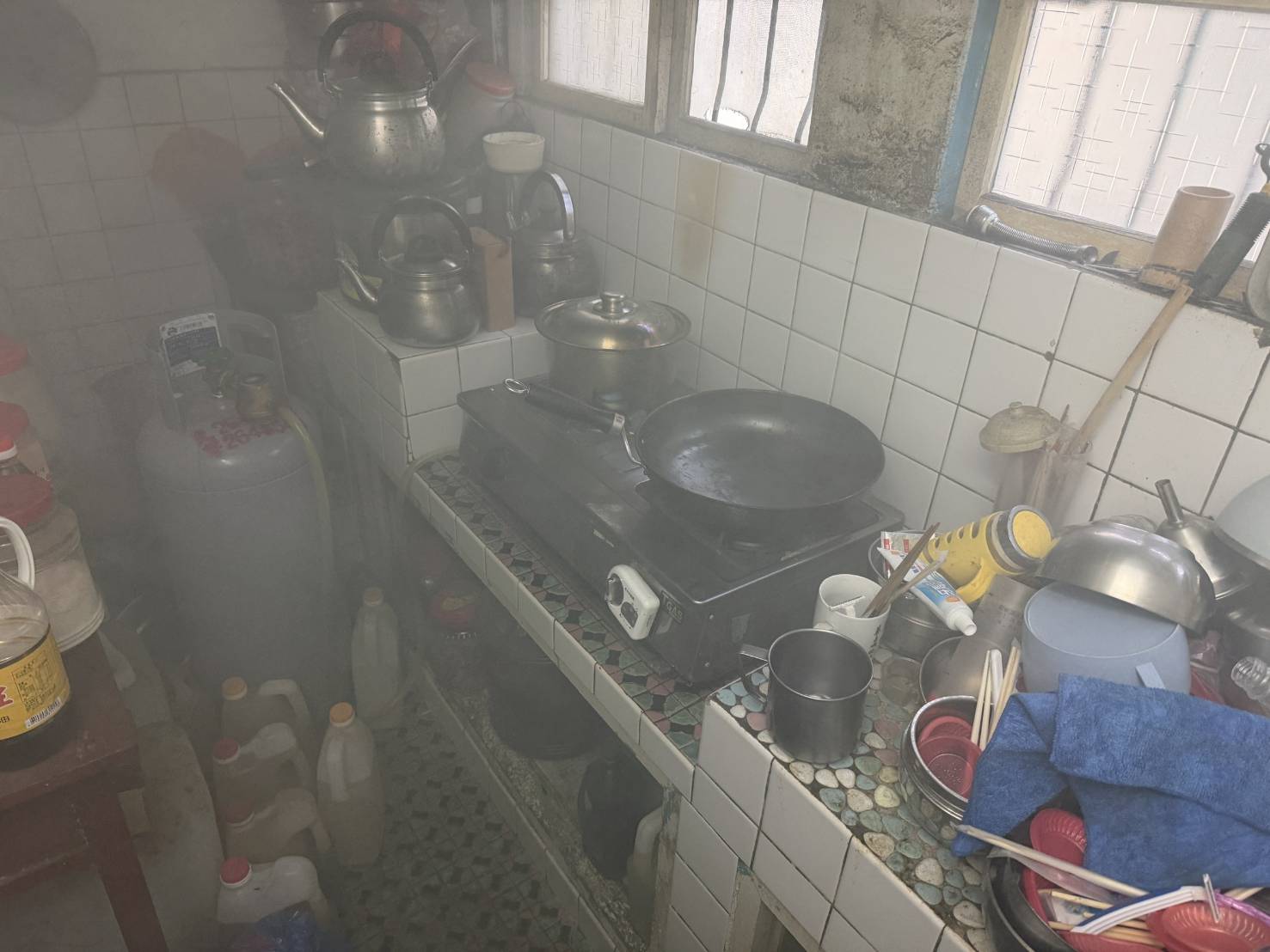 該屋主表示於廚房煮菜湯時外出購物,經鄰居來電告知才知道自家發生火災,幸有鄰居第一時間發現大門有濃煙竄出,並前往查看且關閉爐火及瓦斯才能防止火災發生。住宅用火災警報器原安裝於廚房,因安裝不確實掉落故而放於客廳桌上。