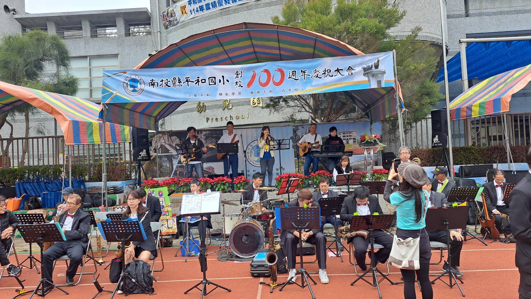 年的歡慶時刻!南投NTT教師樂團以及南崗大樂團全場演奏,讓校慶園遊會氣氛更熱絡。
