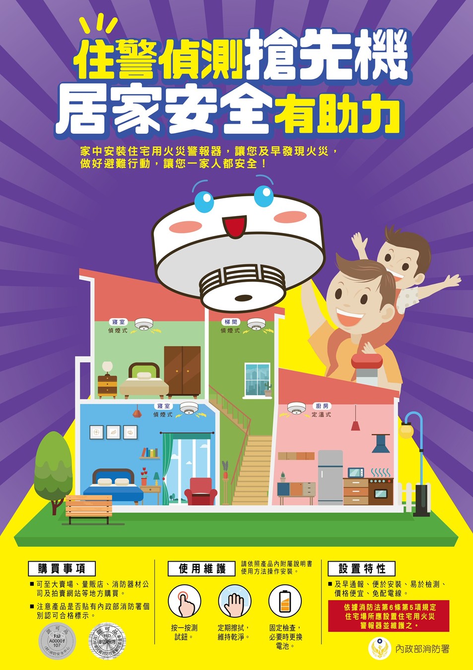 安裝位置:每樓層至少1顆,臥室、樓梯、廚房都要安裝。