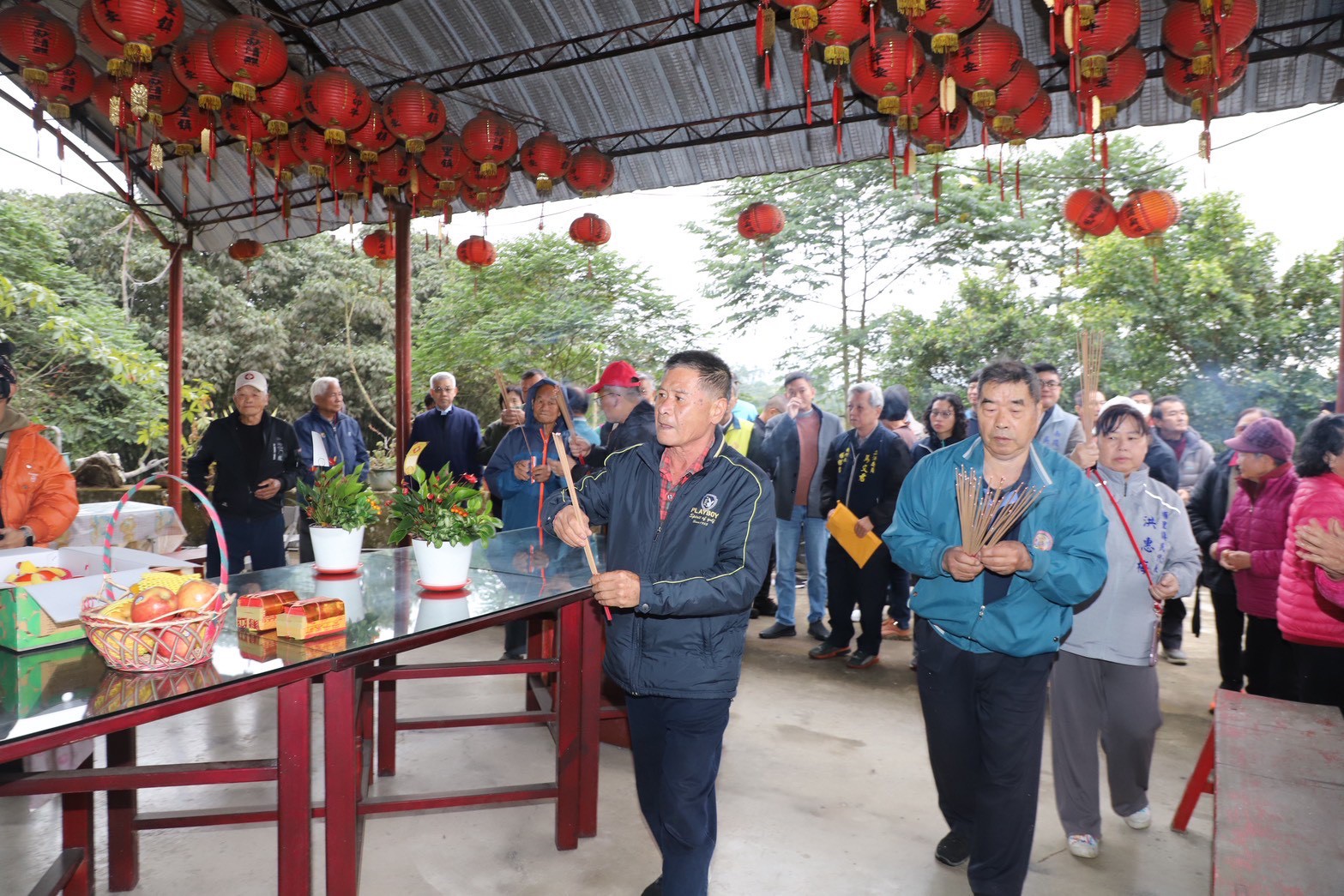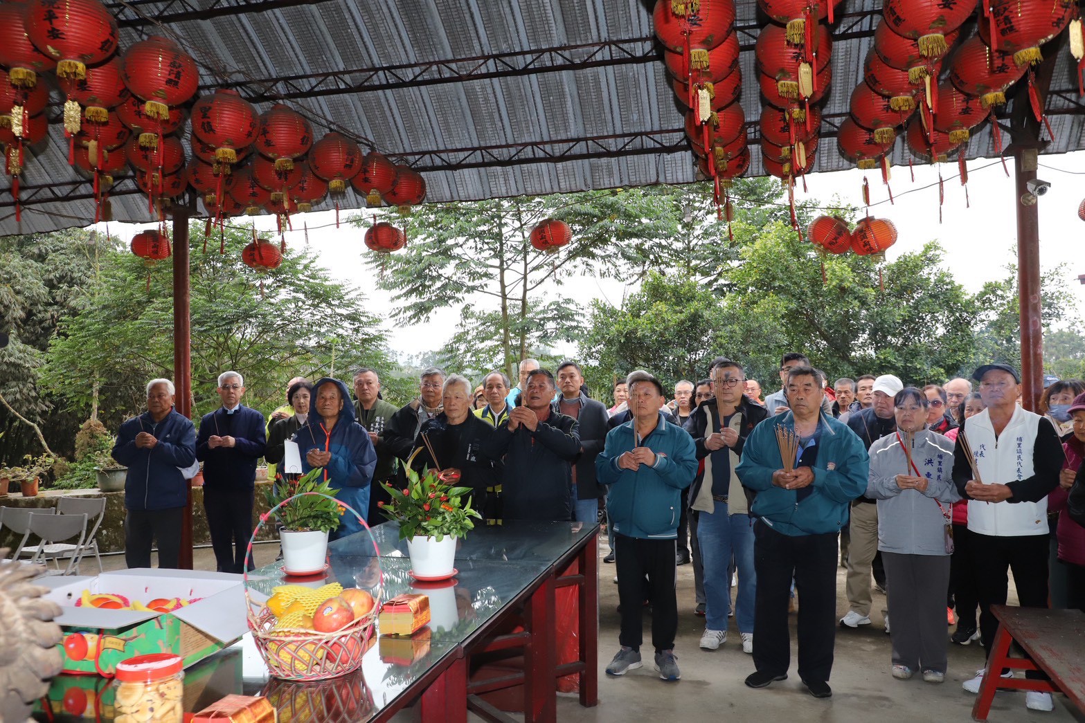 今日馬文君立委辦公室楊樹煌執行長、埔里鎮長廖志城、多位縣議員及其助理、村里長、地方文史工作者、醫師及青農代表齊聚,在會前參拜天仙宮玄天上帝,祈求神明賜予力量,助鄉親抗爭成功,讓業者撤案。