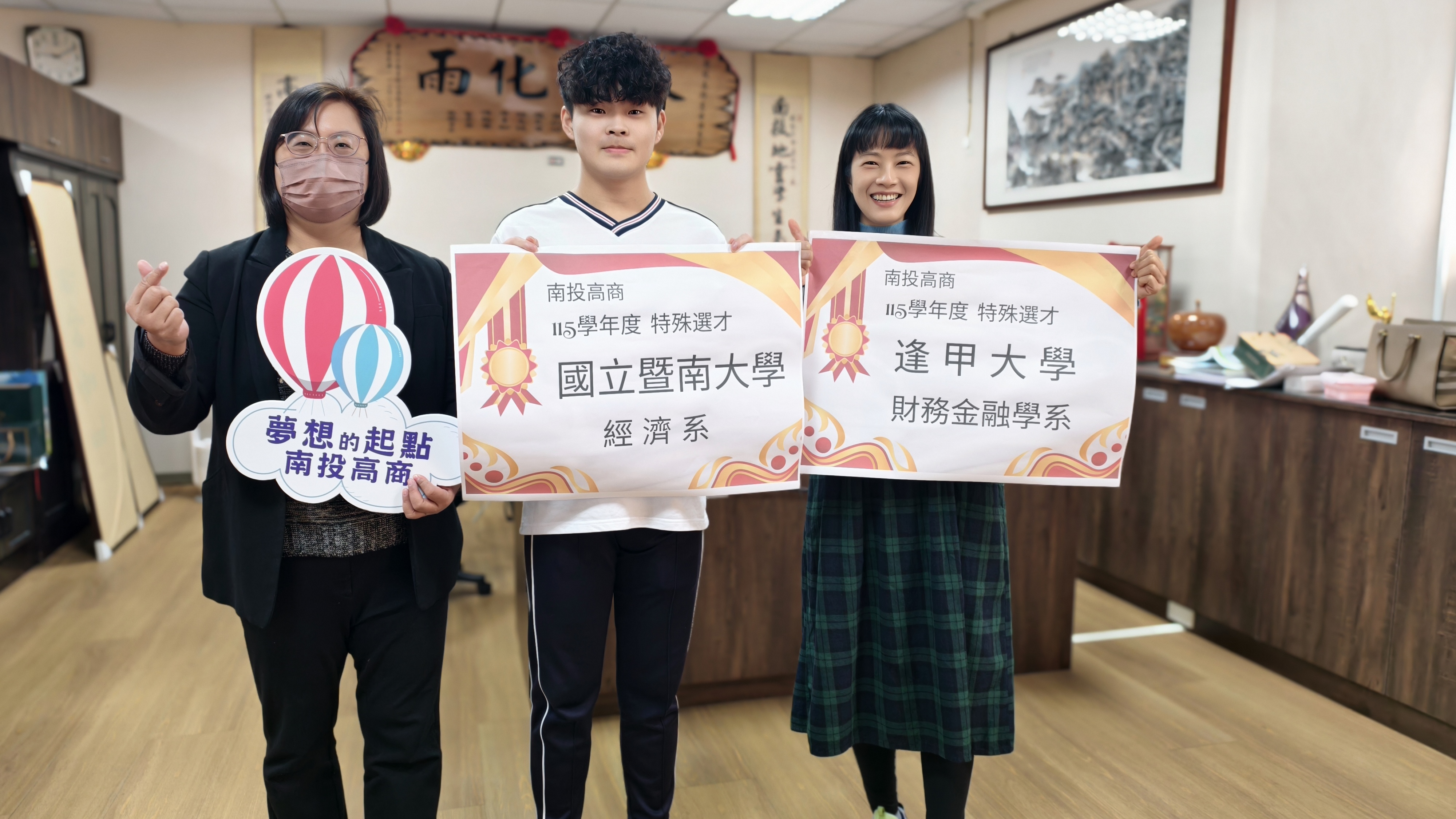 特殊選才雙榜錄取 南投高商洪詠智錄取暨南大學、逢甲大學
