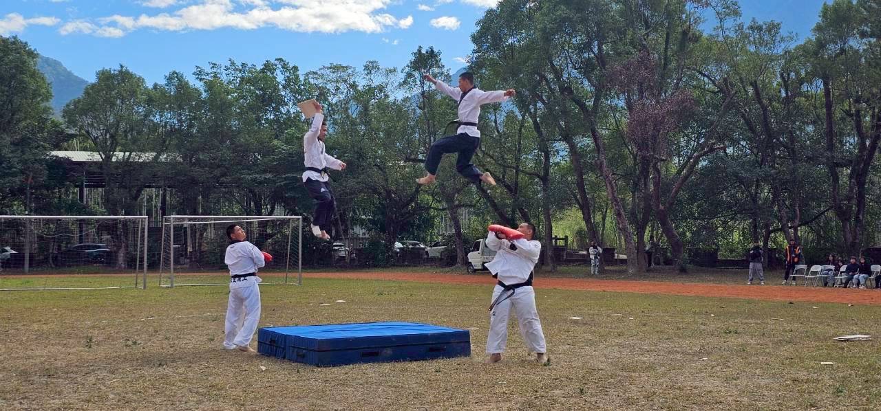 校慶中另一矚目焦點,為杏壇芬芳獎吳聰哲教練所培訓的民和國中跆拳道隊。民和國中跆拳道隊秉持三級制教育精神,結合地利國小、人和國小、水里國小、民和國中及水里商工,建構完整且連續的訓練體系,長年深耕偏鄉體育教育,培育出許多優秀人才。隊伍畢業校友中,包括亞運空手道雙金選手谷筱霜,以及多位投身軍警服務、回饋社會的傑出校友。此次演出以整齊劃一、氣勢震撼的動作,展現薪火相傳的跆拳道精神。