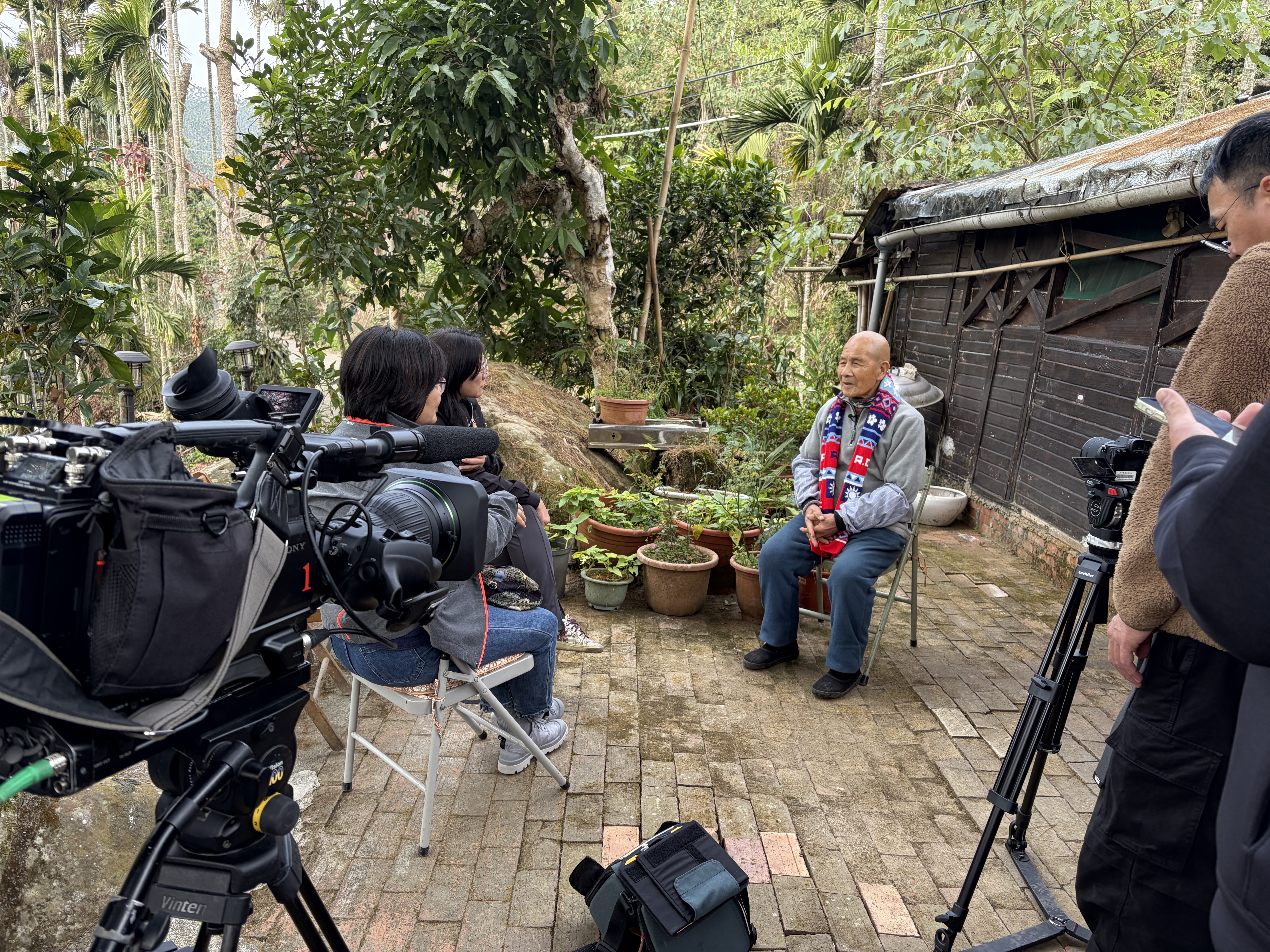 圖一莒光園地企劃團隊採訪榮民王伯伯。