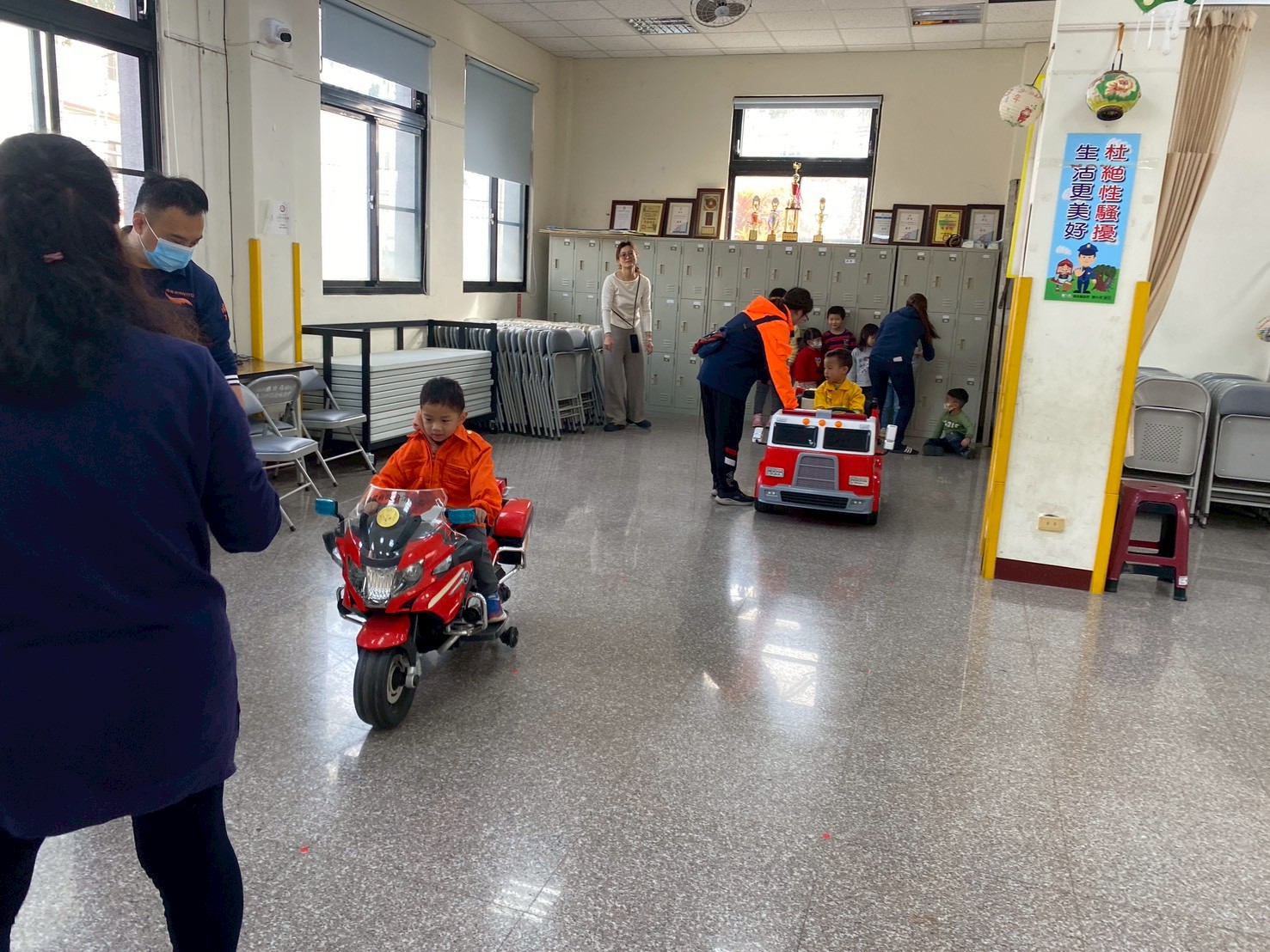 這次特別準備電動消防小車車,讓小朋友體驗穿著小小消防衣,體驗開消防車的感覺!簡直刺激又冒險啊!!也特別感謝校方師生配合鳳鳴消防分隊協辦及參與‼️