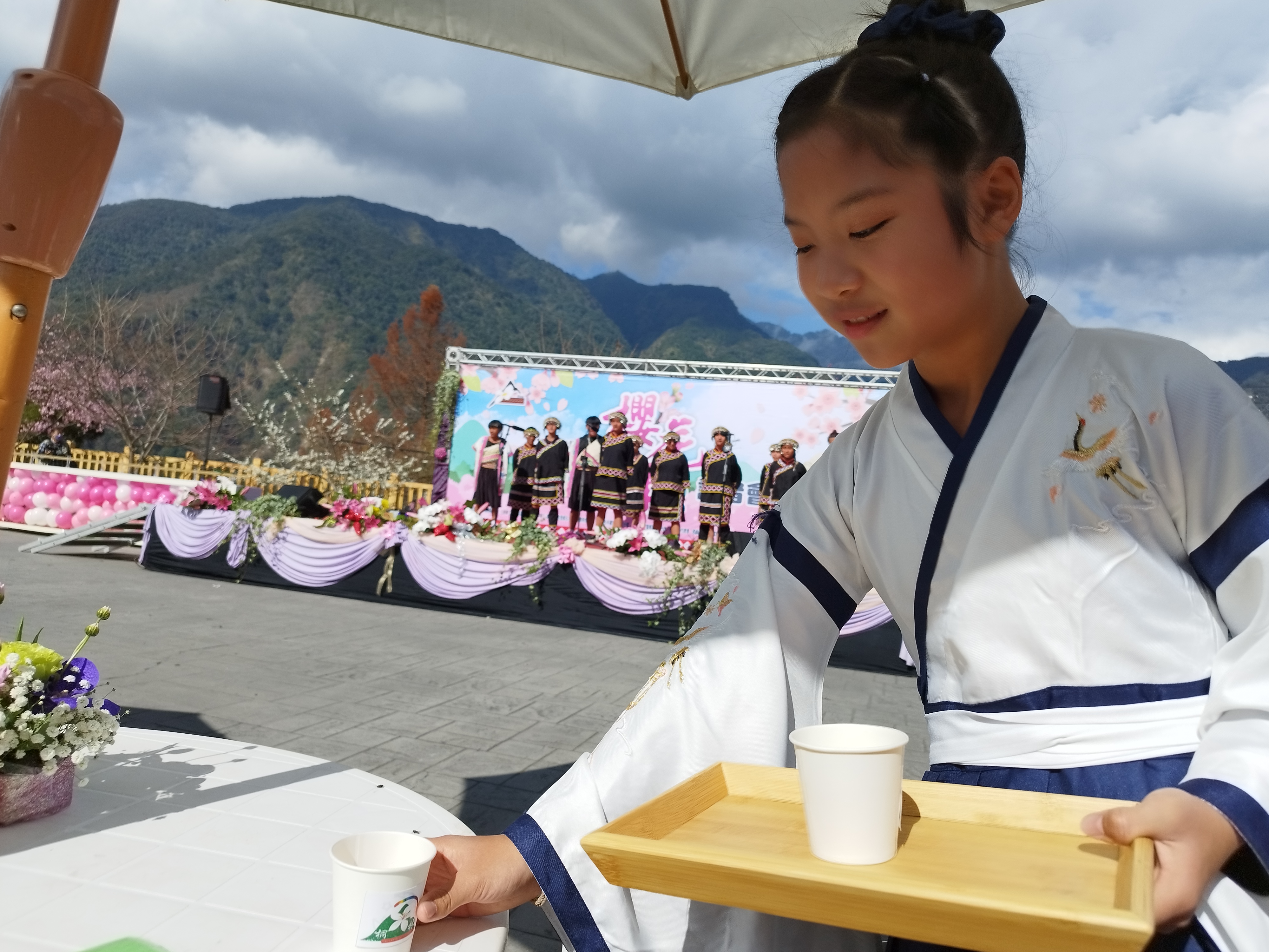 此外,園區特別安排學童化身「小小茶藝師」,為遊客奉上一杯杯香氣四溢的玉山高海拔烏龍茶,讓民眾在花海之中,細細品味信義鄉引以為傲的茶文化。
