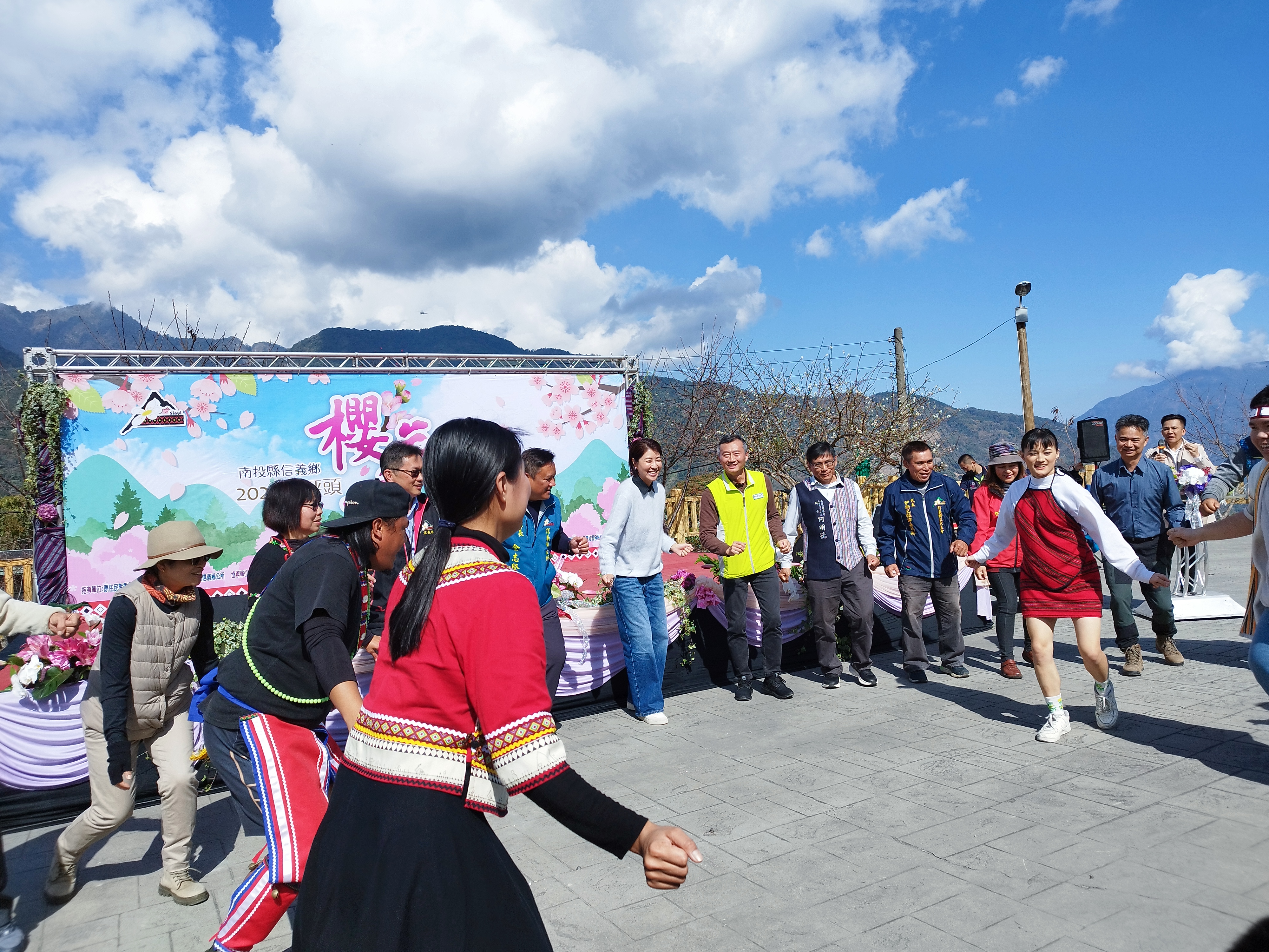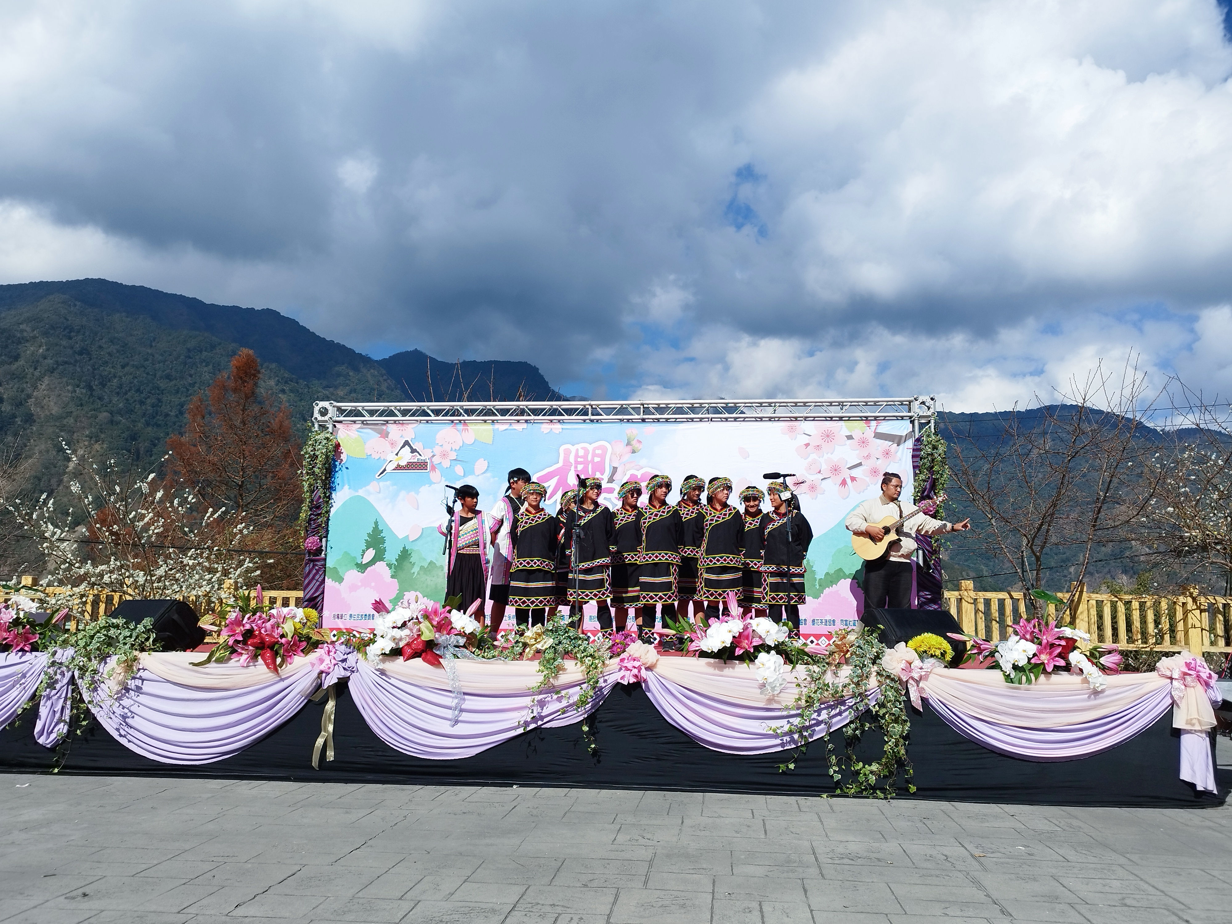 活動現場熱鬧非凡,在地學校與社區團體輪番登台展演,展現信義鄉多元而深厚的文化底蘊。隆華國小太鼓氣勢磅礡、桐林國小以小提琴演奏結合傳統紙馬陣,同富國中合唱團以純淨歌聲打動人心,搭配「布一樣文化工作室」與家政班的精彩演出,讓賞花活動增添濃濃人文溫度。