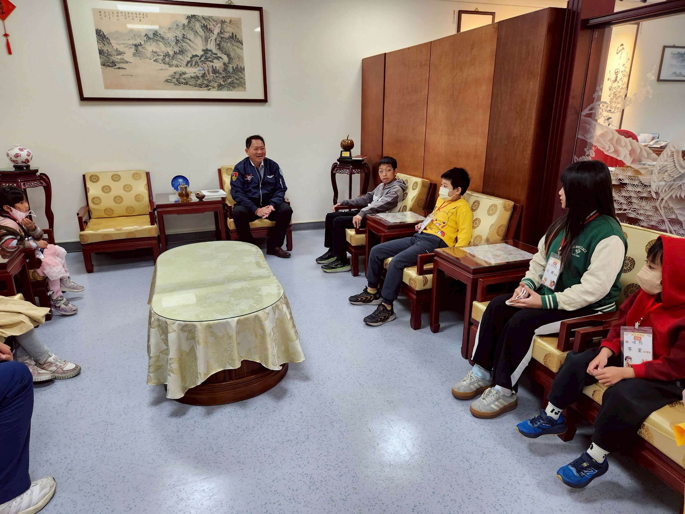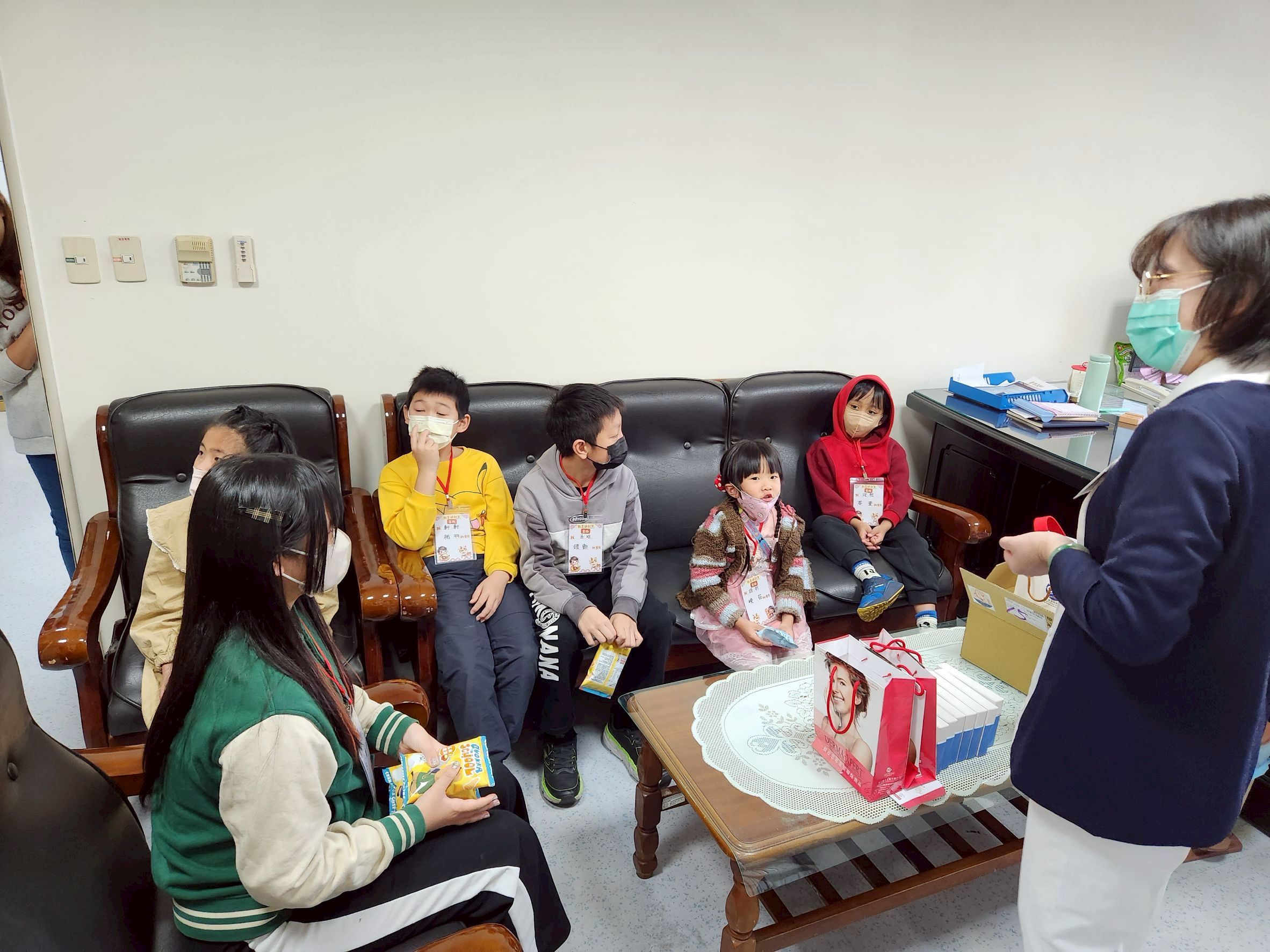 活動一開始,小朋友們跟著家長參觀院區環境,從門診、護理部到養樂居,沿途不時傳來孩子的驚嘆聲。當隊伍來到院長室時,院長特別停下繁忙工作,以親切的笑容迎接這群小小訪客。院長親民、溫和的形象讓孩子們毫不拘束,一位小朋友還主動將自己的零食分享給院長,讓現場氣氛瞬間變得更溫馨愉快。
