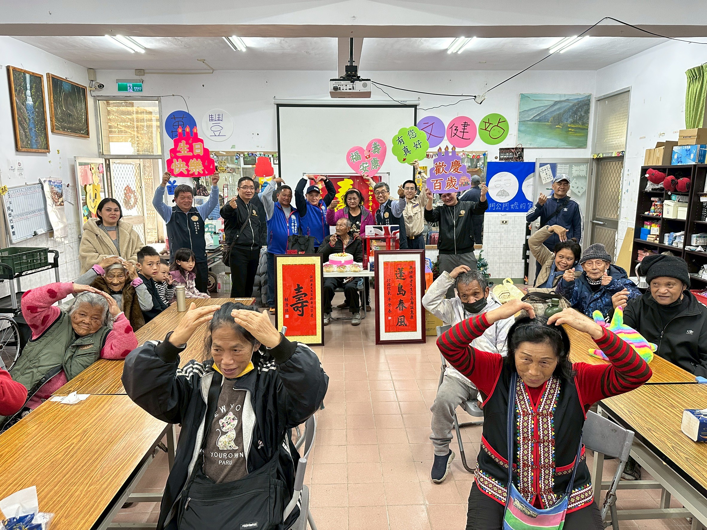 農曆新年前夕,喜迎仁愛鄉榮民人瑞吳保根伯伯百歲壽辰,南投縣榮民服務處李毓錫處長帶領同仁前往萬豐村文健站辦理百歲慶生活動,並邀請仁愛鄉公所、萬豐村長、萬豐社區發展協會、榮欣志工及文健站的長輩們一同參與,恭賀伯伯百歲嵩壽!