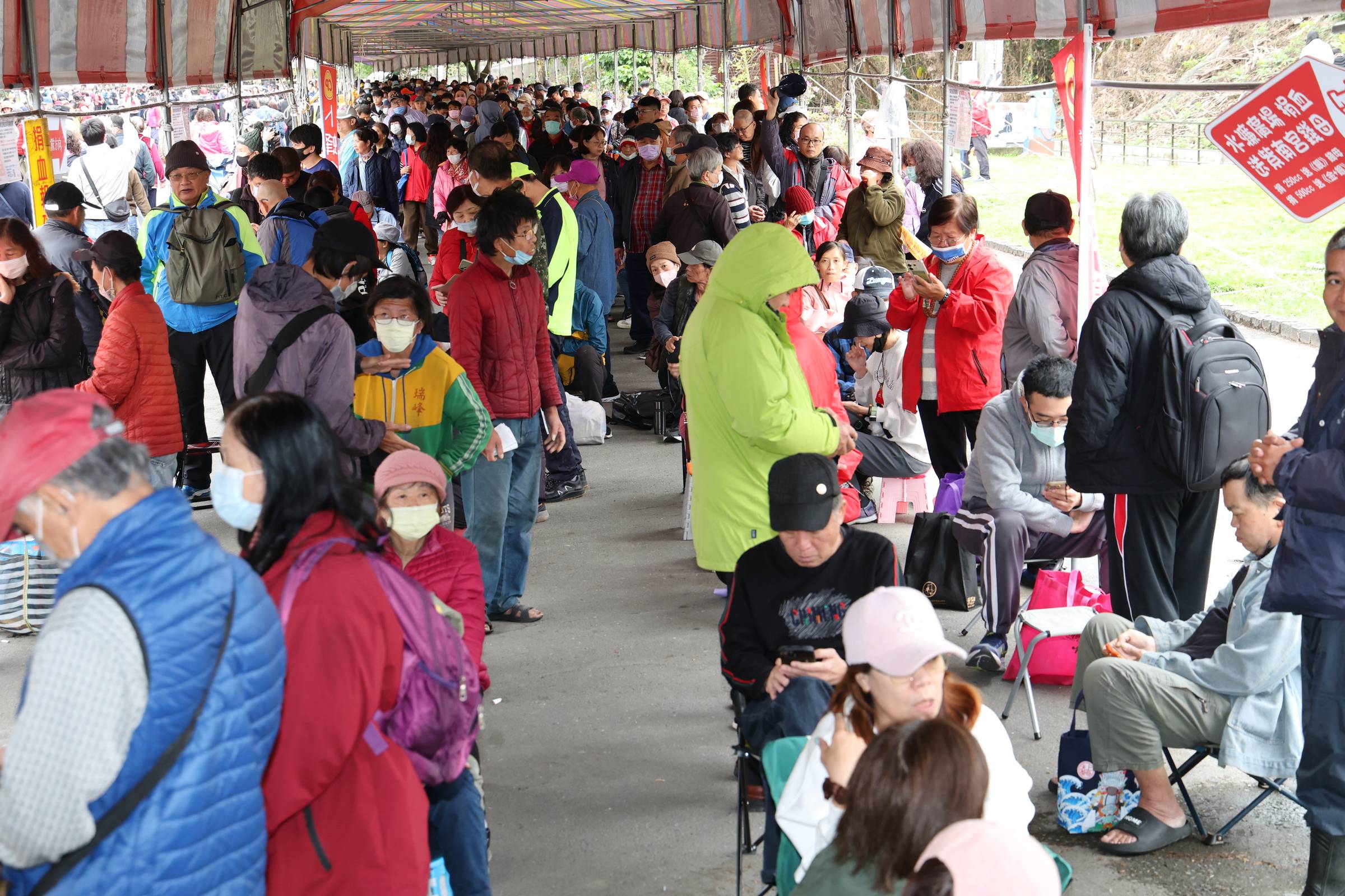 圖三一早就吸引來自各地成千上萬的民眾大排長龍,綿沿到田間農路,熱鬧滾滾。(縣府提供)