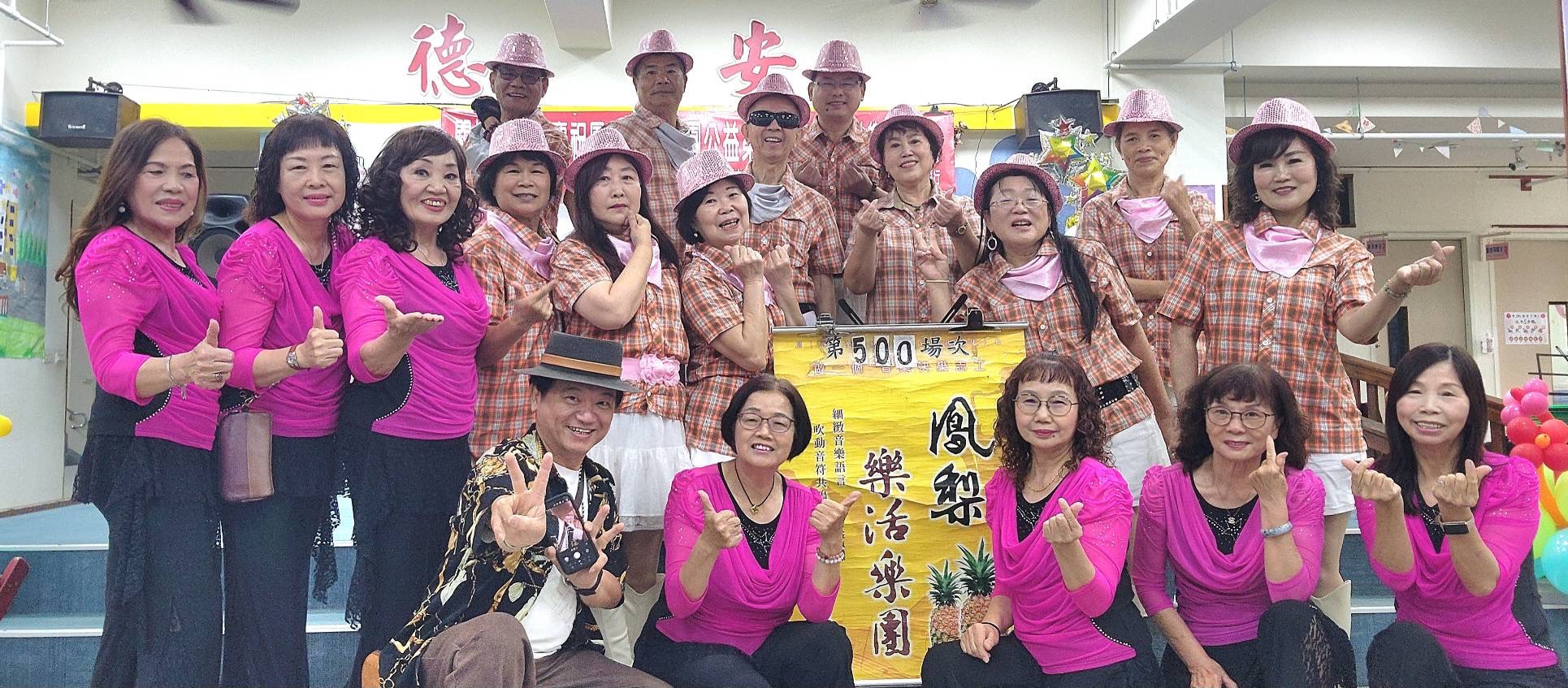 鳳梨樂活樂團長期投入公益演出,服務對象遍及:社區關懷據點、養老院、護理之家 、教養院、育幼院偏鄉與弱勢團體, 截至今天活動樂團已累積500場次的的公益義演,足跡遍及全台各地。今天由團長許美麗親自主持為鳳梨樂活樂團500場次的慶祝活動切下蛋糕。