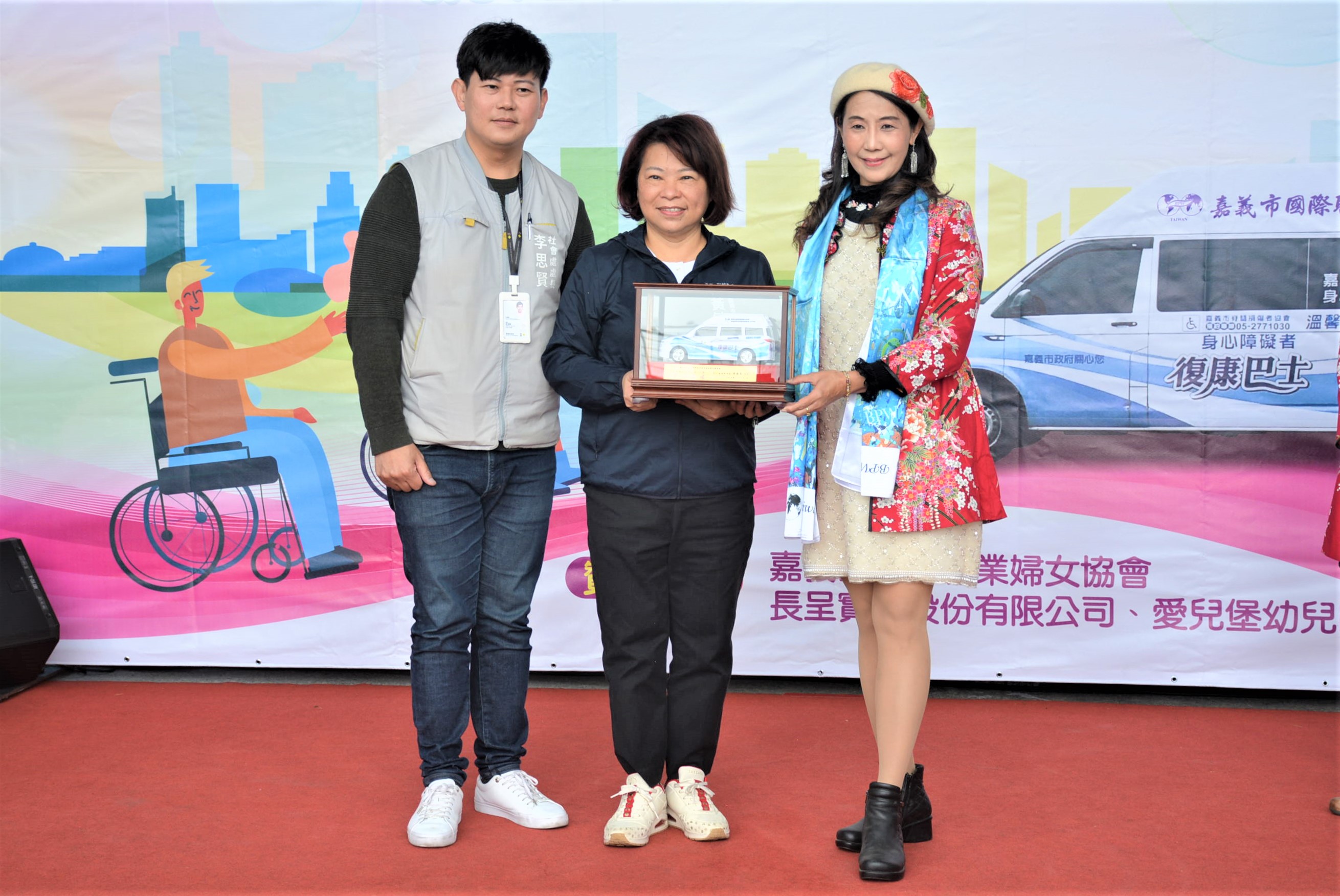 〔記者郭政隆/嘉義市報導〕嘉義市復康巴士主要載送身心障礙者及行動不便且乘坐輪椅者,解決就醫、復健、社會參與等交通接送問題,為提升服務量能,讓更多身心障礙朋友受惠;嘉義市國際職業婦女協會、長呈實業股份有限公司、愛兒堡幼兒園2/7日共同捐贈1輛總價200萬福斯高頂的復康巴士,嘉義市長黃敏惠除向捐助單位表達誠摯的感謝,並表示他們的慷慨將嘉惠更多弱勢族群,感謝各界與市府攜手打造幸福城市。