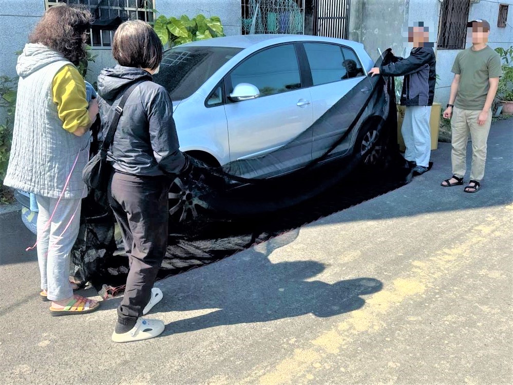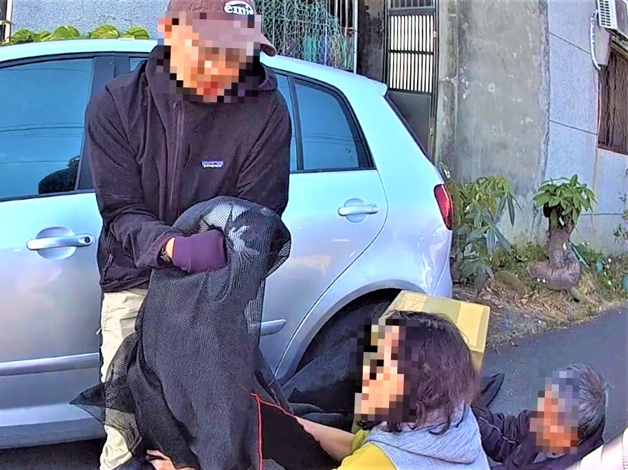 隨後張男便從自家中拿出棉被將自小客三面圍住,由車主開啟引擎蓋並發動車輛,果然貓咪受到驚嚇後從車底跑出,警消便與民眾一擁而上以捕捉網將其成功捕獲,張男頻頻向警方表達感謝之意;警方也不忘提醒張男,外出時也要將其門窗關好,避免類似情況發生。