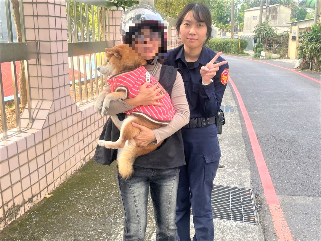 正當劉員一無所獲之際,突然接到袁員電話,稱在圓福街靠近嘉義國中的岔路發現狗狗,立即將其攔下,並通知婦人前來確認。婦人趕到現場後,激動地抱起愛犬喜極而泣。員警懷疑婦人愛犬因年紀大走路慢,加上婦人稱愛犬膽小,可能是躲到周邊的車棚裡,恰巧碰到袁員徒步在附近找尋,才能順利找到。婦人非常感謝員警熱心協助,讓她可以順利找回愛犬。