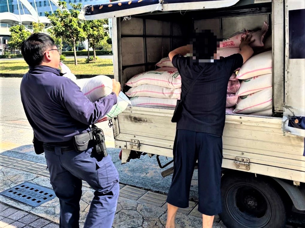 經警方詢問報案人,得知有路過民眾看見一輛貨車搭載米袋行經忠孝路與保建路口時,不知何原因致使貨車上米袋遺落在道路,民眾發現後,便報案請求警方協助;警方知悉原委後,發現遺落在道路上的米袋,有妨礙用路人行進的狀況,故與熱心民眾先將米袋移置路旁後,查看米袋上的圖示尋找是否有店家聯絡方式,查看無果後先將米袋載回派出所。