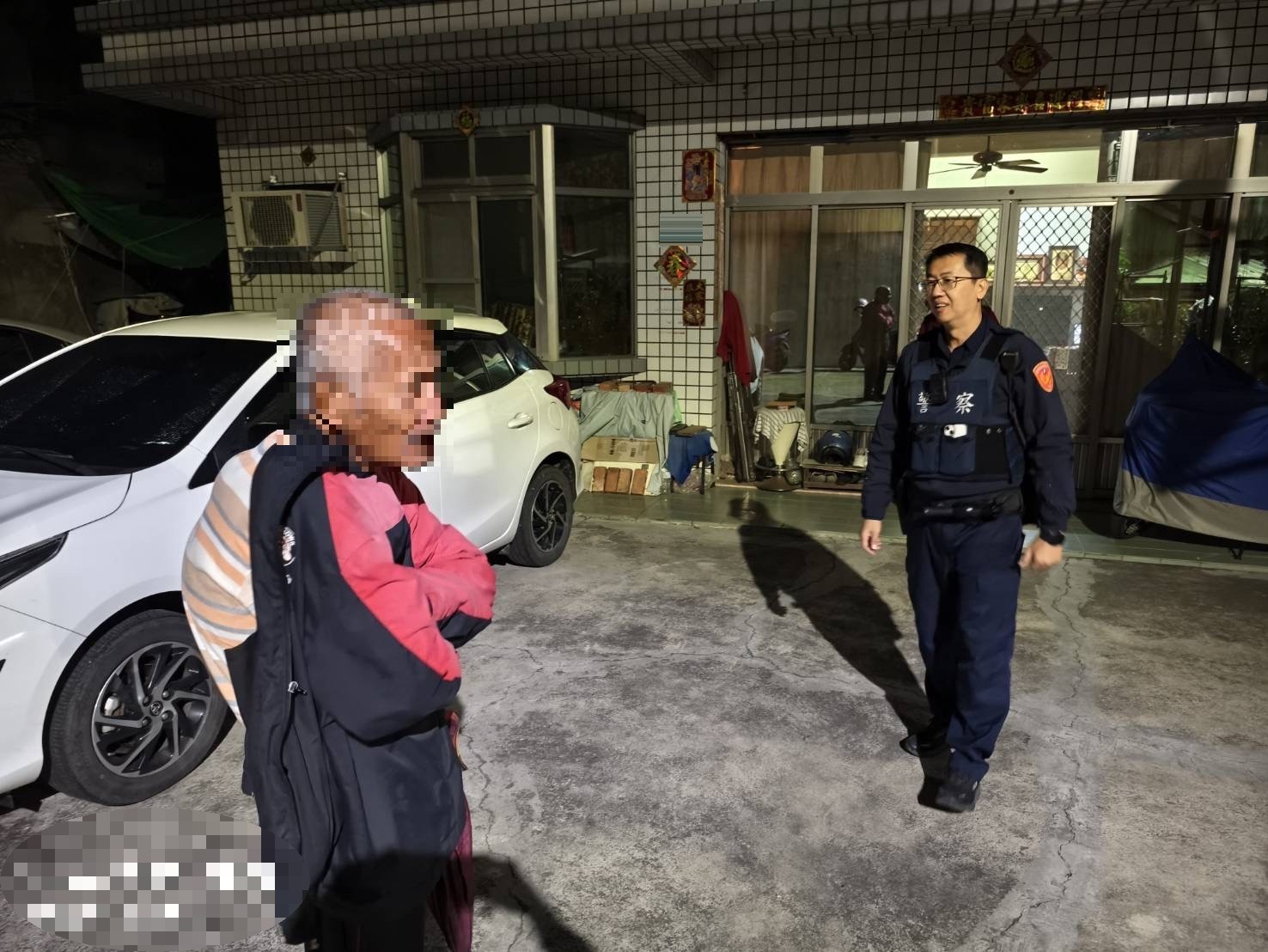 員警關懷詢問姓名、年齡與住居地詳址,老翁語意表達不清也無法準確說出年籍資料,只是重複說著要回家,所幸老翁記得自己名字,經員警查詢得知張翁住於嘉義縣水上鄉,因聯繫不到其他家人,陳、黃等2員決定以巡邏車護送安全返家,便攙扶張翁上巡邏車並安撫不用擔心我們知道你住哪裡,會安全載送返家,張翁表示幸好遇見了熱心的員警積極的協助感到窩心,離開時頻頻向員警道謝。