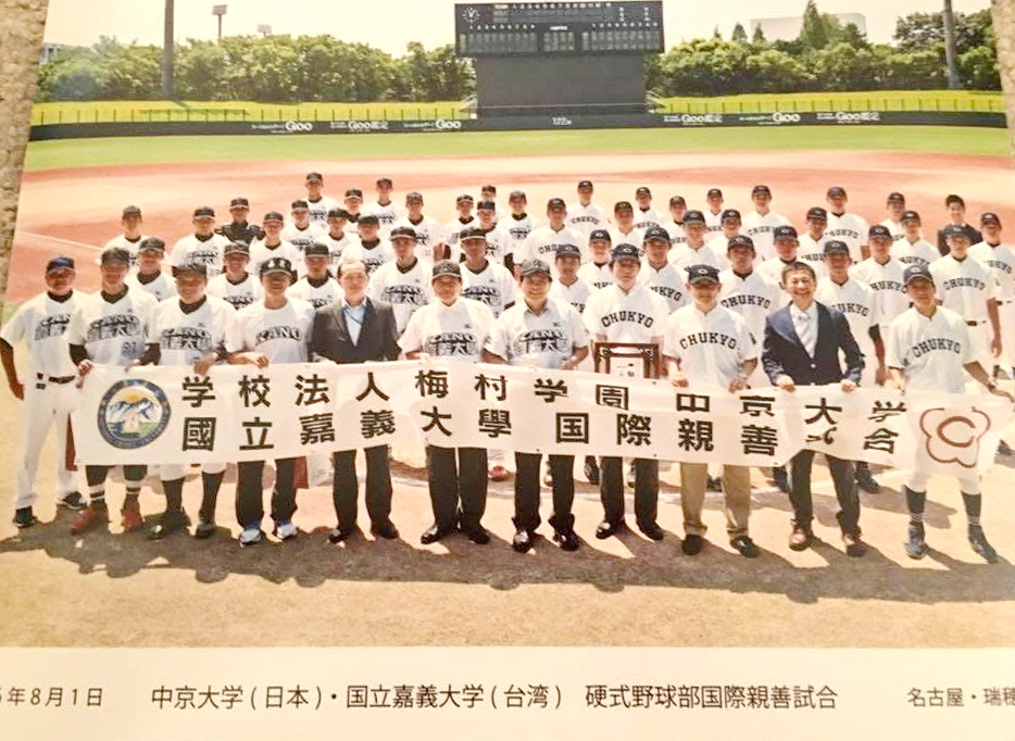嘉義大學與日本中京大學因當年的機緣,在嘉義市政府熱心引薦下,2015年簽署學術交流協議,希望在棒球等領域進行合作,兩校每年進行一次棒球交流賽,並輪流於日、臺兩地舉辦。2016年至2019年分別於日本名古屋瑞穗及豐田球場(2016)、嘉義市立棒球場(2017)、日本名古屋豐田球場(2018)及嘉義市立棒球場(2019)進行2~3場棒球交流比賽,直至2020年COVID-19疫情襲捲全球,兩校棒球交流賽受疫情影響而停止舉辦。