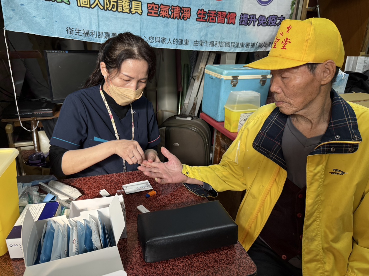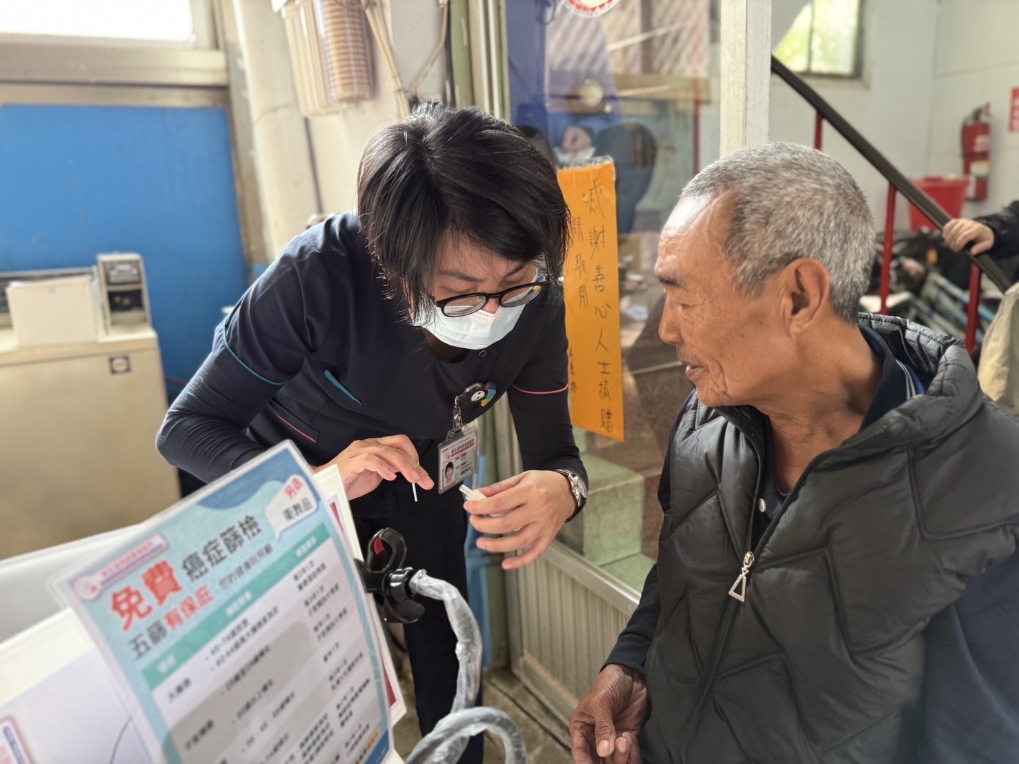 〔記者呂明鴻/嘉義市報導〕嘉義醫院「芳春公寓健康關懷站」,2/18日舉辦健康促進義診活動,由陳詩典醫師親自執行腹部超音波檢查與診療,關心住民健康,並加碼提供五癌篩檢及B、C肝篩檢,打造一站式健康服務;此外,醫院更攜手民間企業提供物資,讓長輩們感受到滿滿的關懷與溫暖。