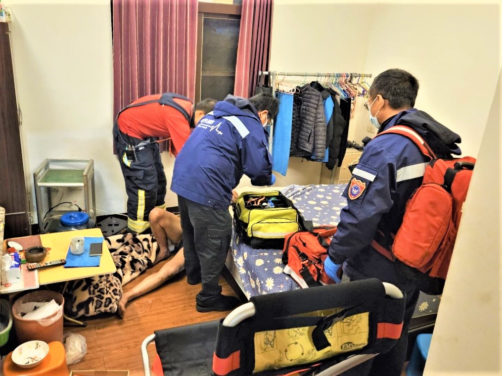 在經過強力開鎖,終於成功撬開大門,員警與消防局救護人員迅速進入屋內查看陳男身體狀況,發現陳男倒臥在客廳地板上,意識模糊口齒不清,右側肢體癱軟疑似中風,救護人員立即展開緊急處置,確保陳男生命徵象穩定後,迅速送往醫院接受治療。員警協助聯繫其他家屬,通知前往醫院陪同照顧,臨行前家屬頻頻感謝警方及救護員的暖心幫助。