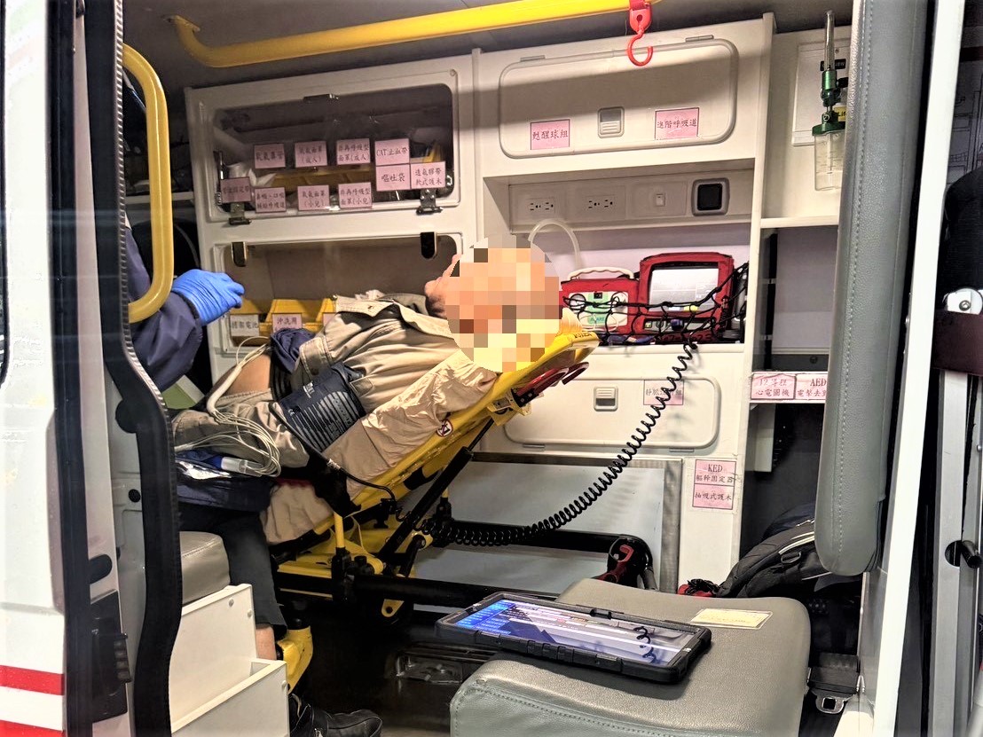 李姓老翁當天凌晨時分,獨自冒著寒風細雨步行外出至北興街採買,突然因心臟病發作導致身體不適而坐在道路旁休息,所幸經路過熱心民眾發現關懷詢問協助報案,員警到場先攙扶李翁至路邊安全處所休息,經通知救護人員到場初步身體檢查,發現李翁疑似天氣寒冷導致心血管疾病發作急需送往醫院治療。
