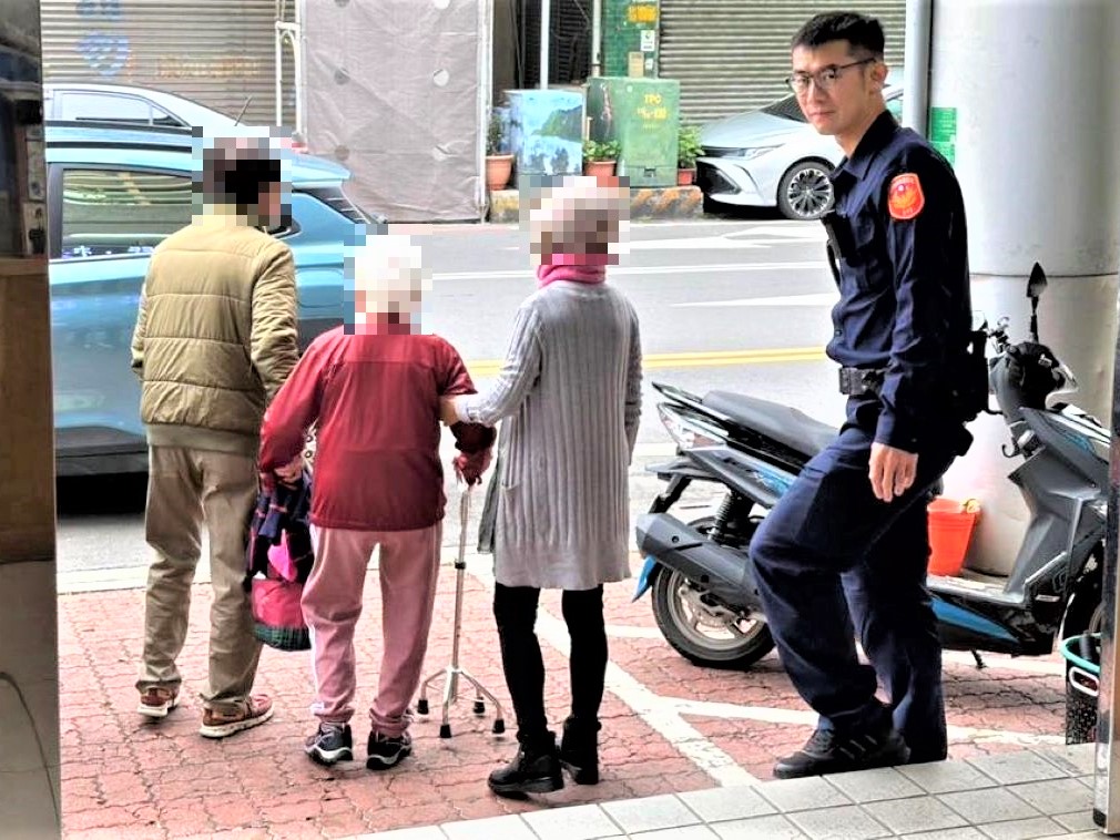 老婦人頻頻搖著頭不發一語,接著警方詢問老婦人有無攜帶證件時,老婦人卻指著前方說:「我要回家」,警方見狀後,發現老婦人疑似患有失智症,於是查詢當日有無受理協尋人口的案件,惟卻毫無所悉,突然間,警方在老婦人的枴杖,發現貼有1張迷失老人的貼紙,警方便撥打電話詢問社會福利機構老婦人的年籍資料。